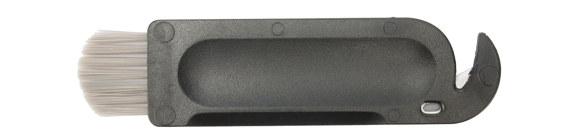 Инструмент для ухода за устройством оказалась вполне стандартным. Он совмещает в себе щетку для очистки от пыли и нож для срезания намотавшихся ниток и волос.