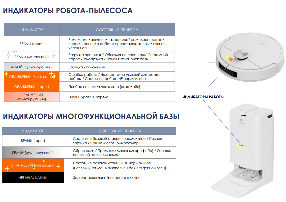 Свои индикаторы есть и у базы. Их расшифровка также приведена в руководстве пользователя.