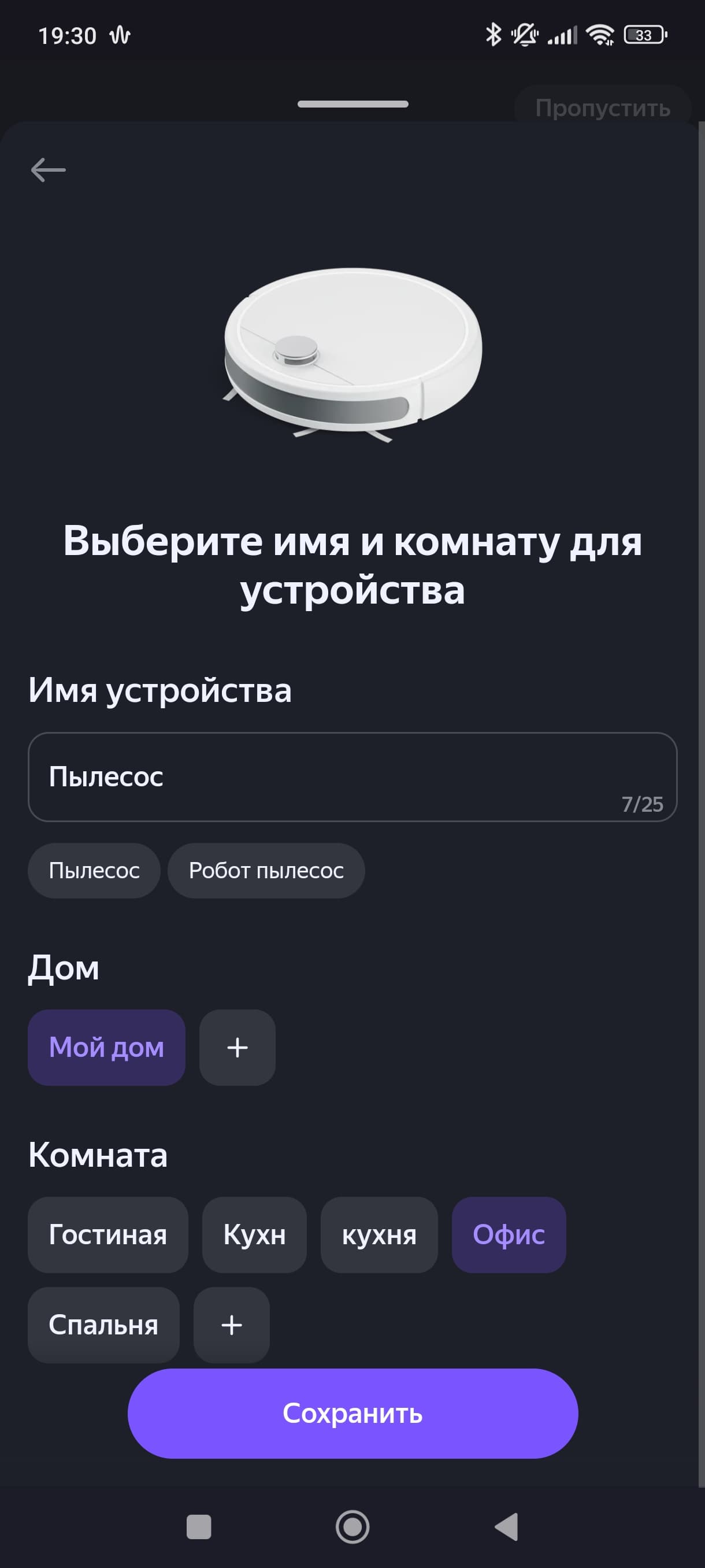 В ходе первоначальной настройки пылесосу можно назначить свою комнату (либо другое помещение).