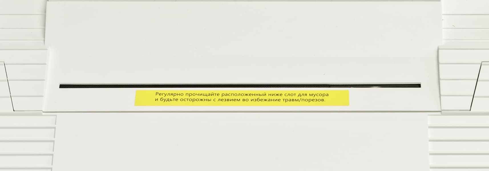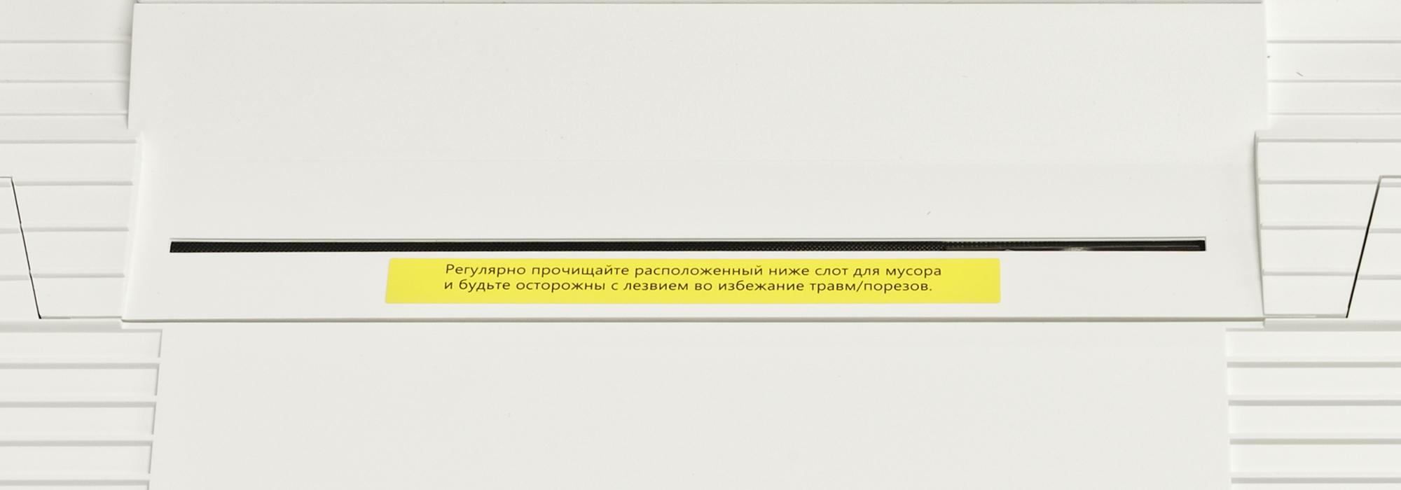 Рядом с трапом обнаружился не совсем обычный элемент — щель, под которой прячется автоматический нож очистки центральной щетки. Его назначение — срезать намотавшиеся на щетку волосы, нитки и прочий подобный мусор. Рассмотреть его в работе у нас не получилось, однако мы в целом представляем принцип работы устройства — вращающийся нож (почти как у мясорубки, только маленький и острый) выдвигается вверх и двигается горизонтально, срезая волосы.