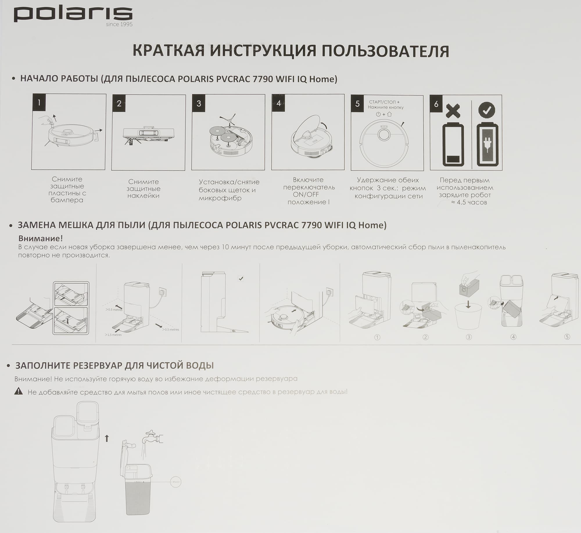 В инструкции подробно описывается устройство робота и базы, эксплуатация прибора и уход за ним. Тут читатель найдет также много картинок с подписями и таблицу устранения типовых неисправностей. Прочитать все это весьма желательно, особенно если это ваш первый робот с такой функциональностью