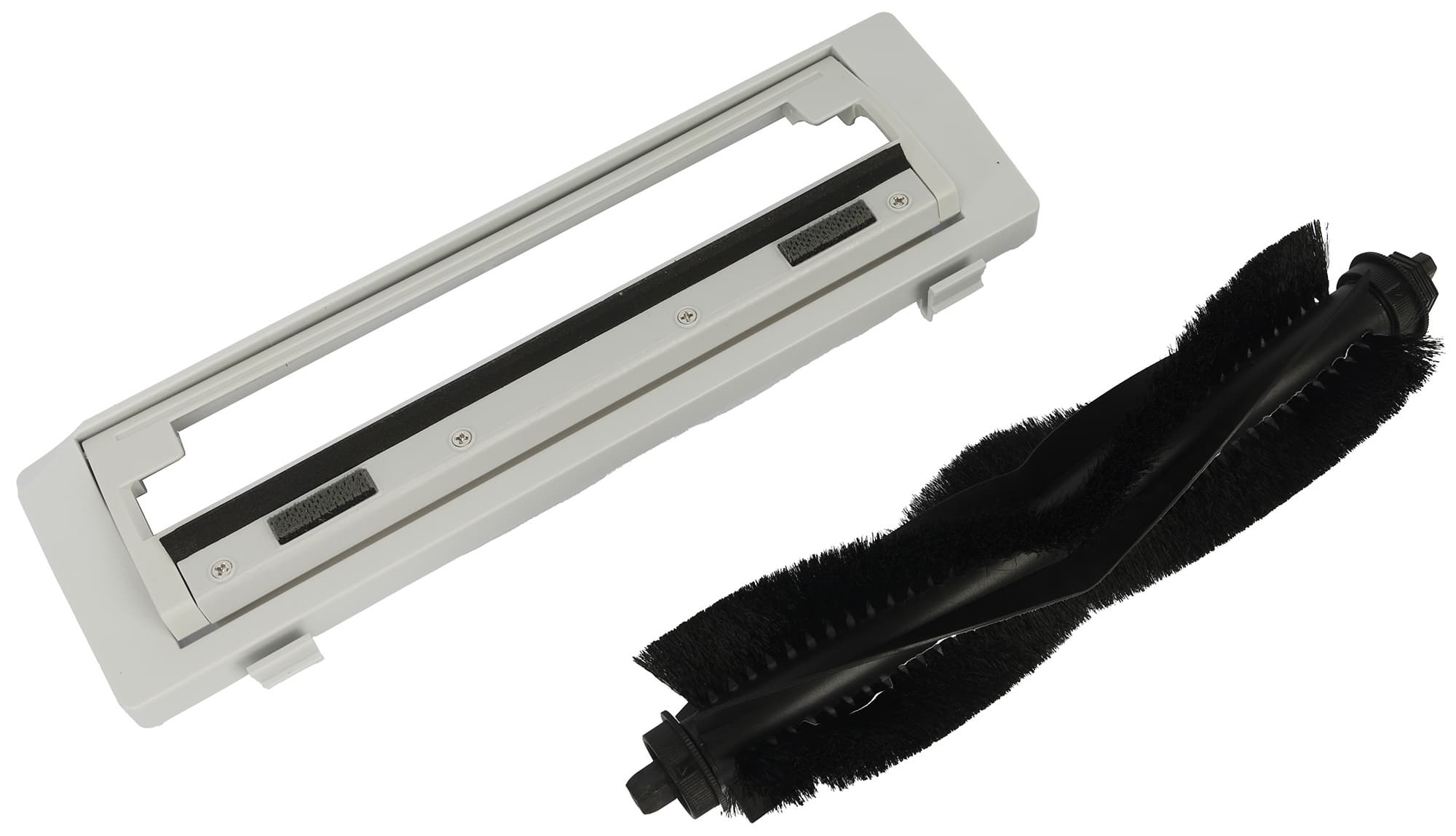 Центральная щетка имеет привычные ряды щетины, чередующиеся с мягкими V-образными ламелями. Рамка крепления щетки без перемычек или каких-либо других препятствий, защищающих щетку от наматывания ниток, проводов, шнурков и тому подобных вещей — для их удаления используется специальная система интегрированная в базу. Рамка для наилучшего контакта с полом подпружинена, имеет резиновый уплотнитель и две мягкие наклейки (чтобы не скрести по паркету или другому твердому покрытию).
