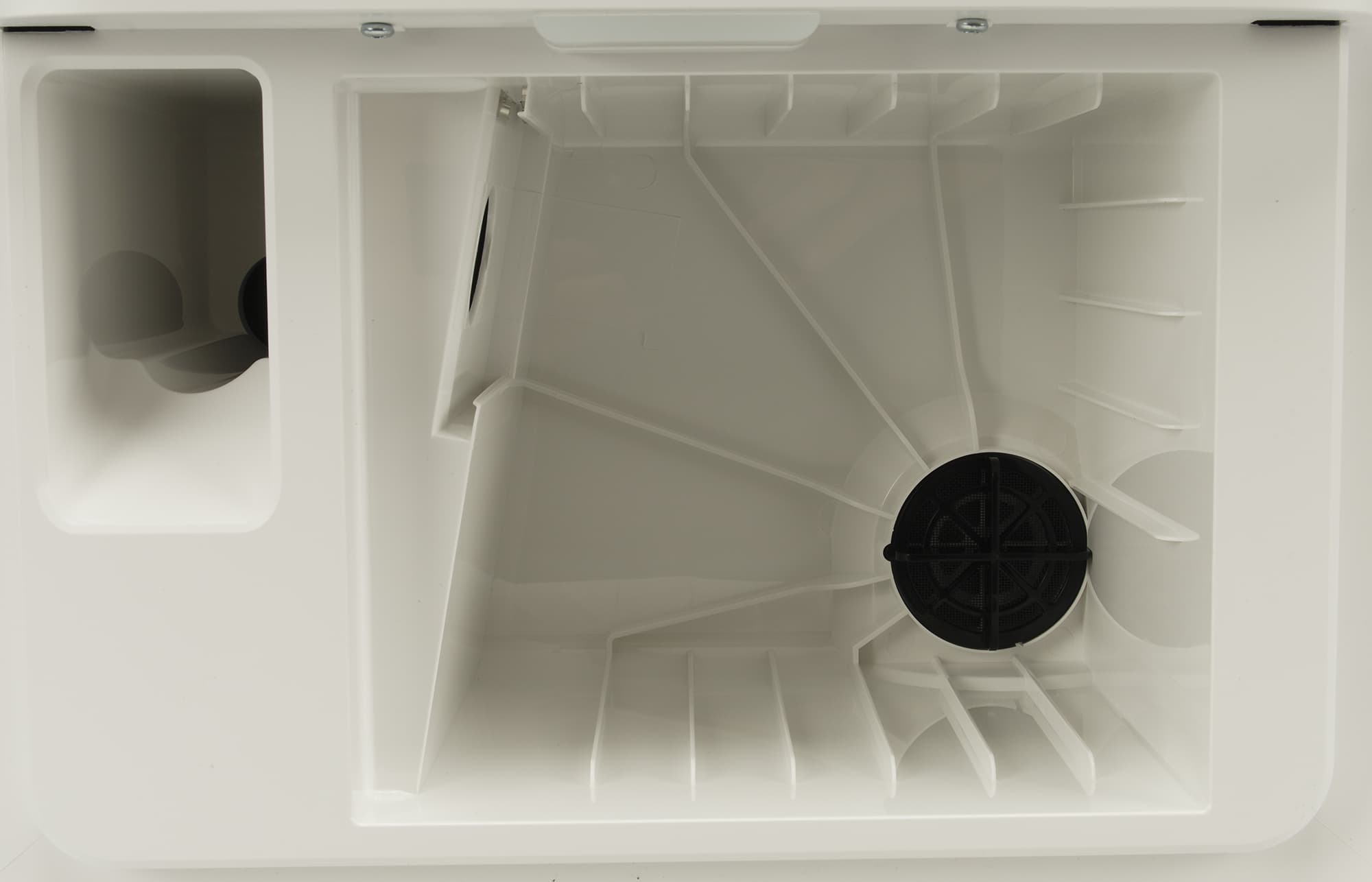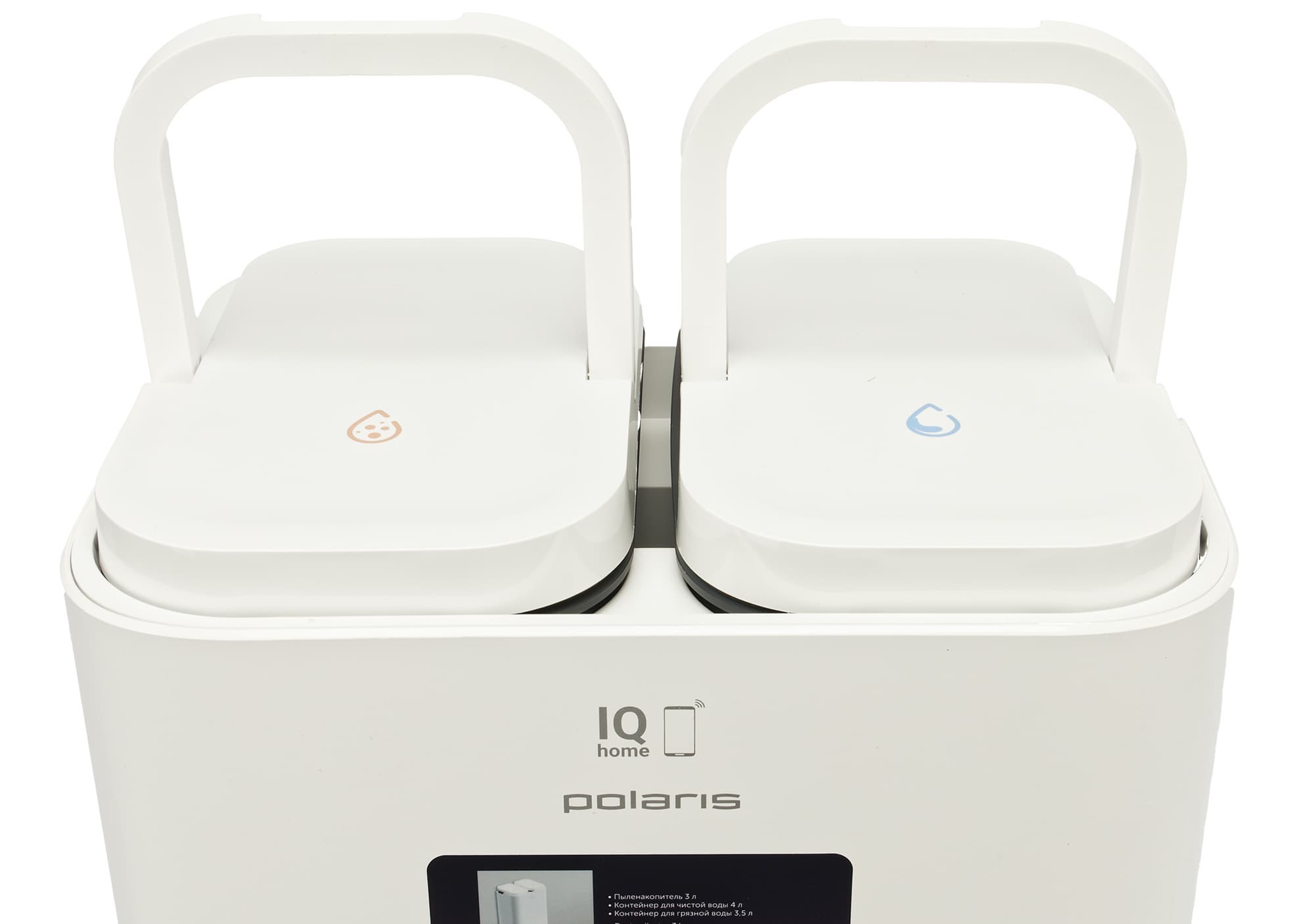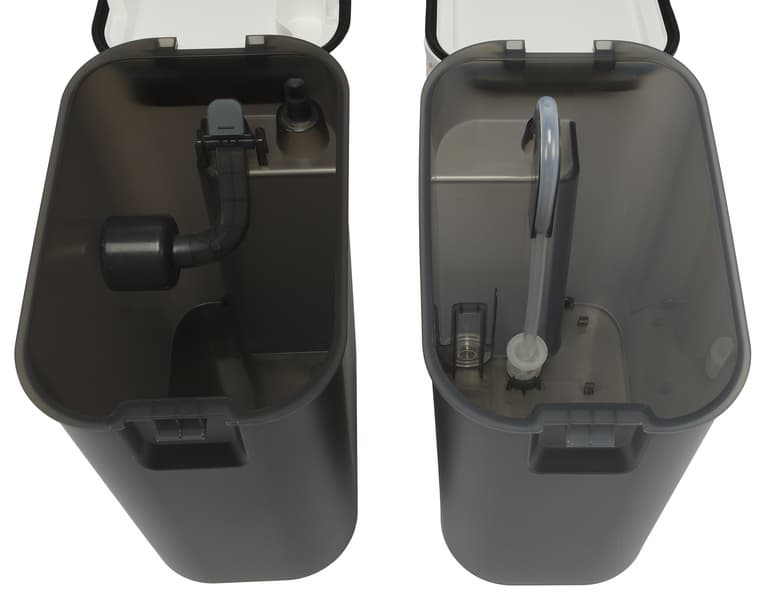 Под верхней крышкой находятся отсеки для установки контейнеров для грязной и чистой воды.