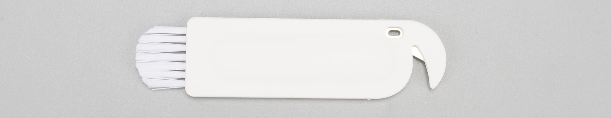 Инструмент для ухода за устройством оказалась вполне стандартным. Он совмещает в себе щетку для очистки от пыли и нож для срезания намотавшихся ниток и волос.