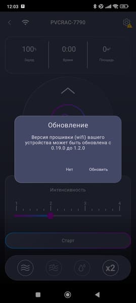 После первоначальной настройки приложение не требует каких-либо дополнительных действий (впрочем, нам могут предложить обновить прошивку робота).