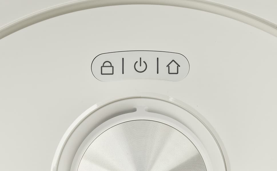 Габариты робота чуть больше среднестатистических пылесосов, но это и неудивительно: современные роботы с множеством дополнительных функций слегка подросли: диаметр составляет 35 см, высота — 10 см. На верхней панели мы видим логотип производителя, а в верхней части — три кнопки со светодиодной подсветкой.