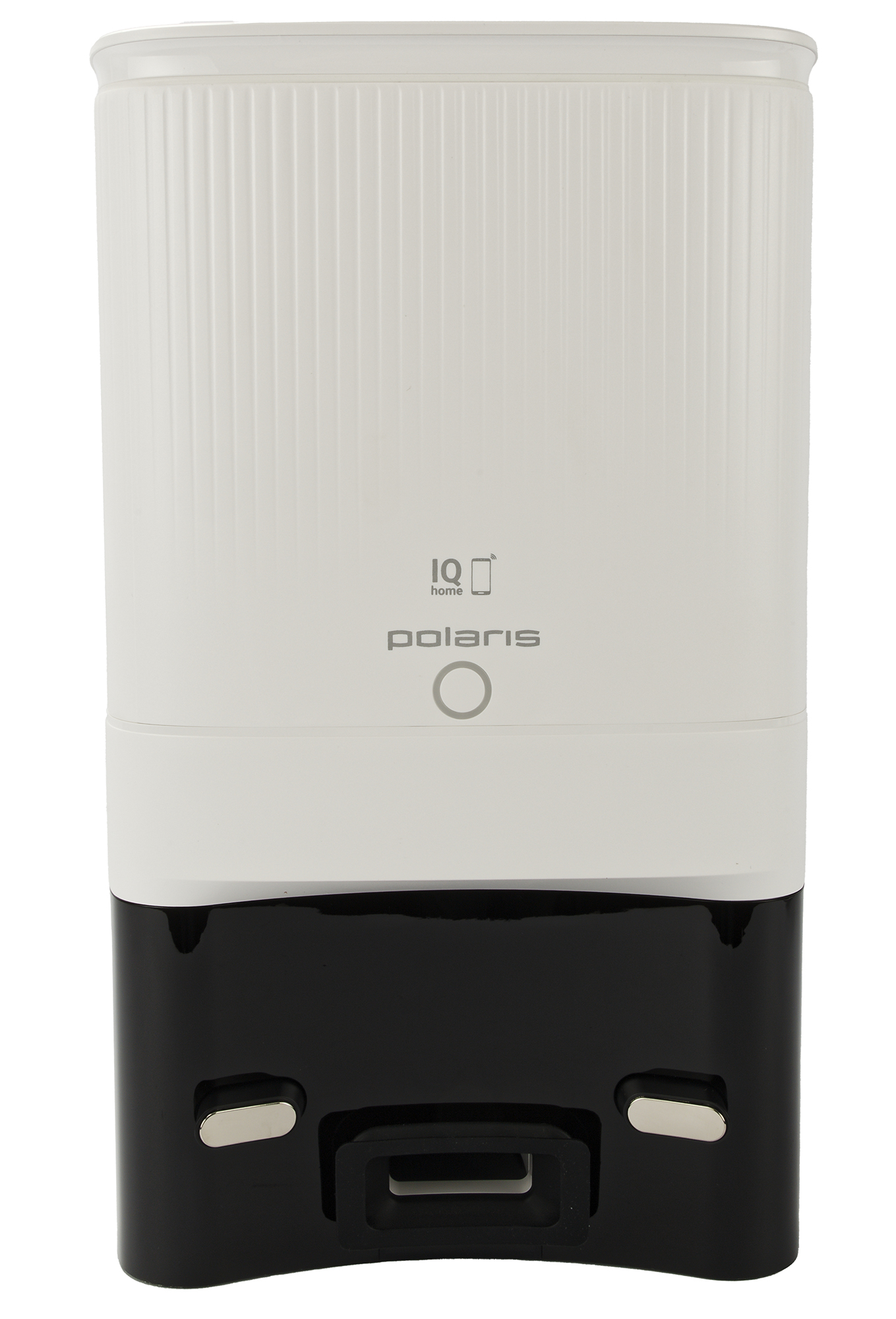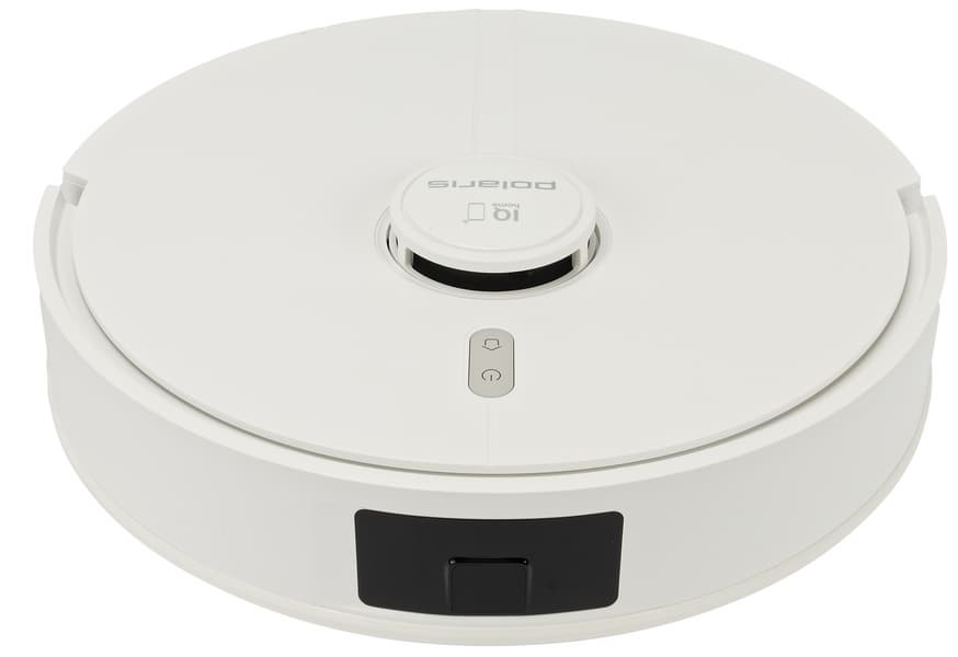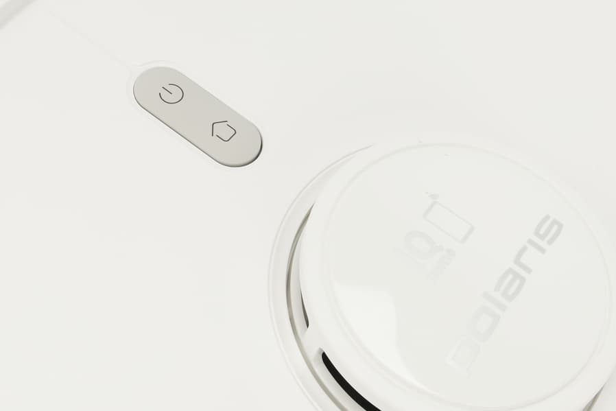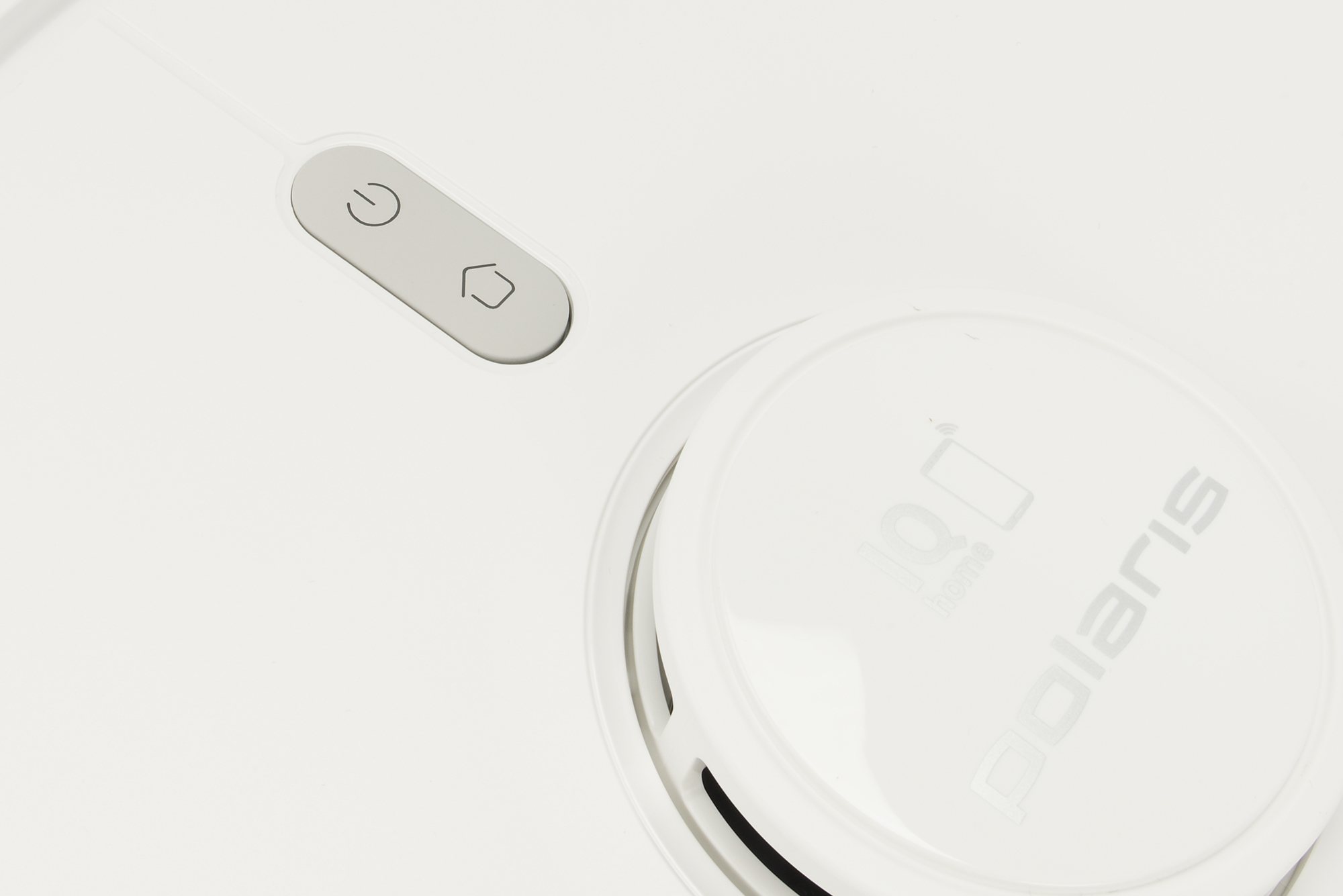 Дизайн без изысков: башенка лидара украшена логотипом Polaris и изображением смартфона с подписью IQ Home (что напоминает нам о возможности управления пылесосом с помощью приложения для смартфонов).