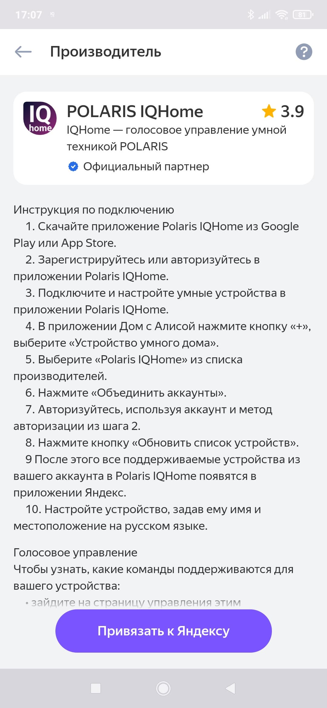 Голосовое управление (с помощью Алисы) также работает, но тут, как водится, имеется множество недоработок. Проще воспользоваться фирменным мобильным приложением — оно функционирует исправно, без нареканий.