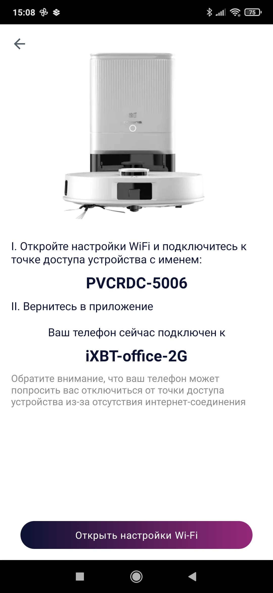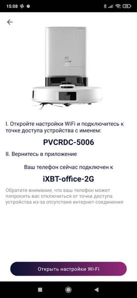 Первоначальная настройка подразумевает добавление пылесоса в список устройств. Для этого нужно найти робота в списке, после чего подключиться к Wi-Fi-сети пылесоса и передать ему данные о домашней сети (ее название и пароль). Устройство можно добавить и путем поиска модели в общем списке.