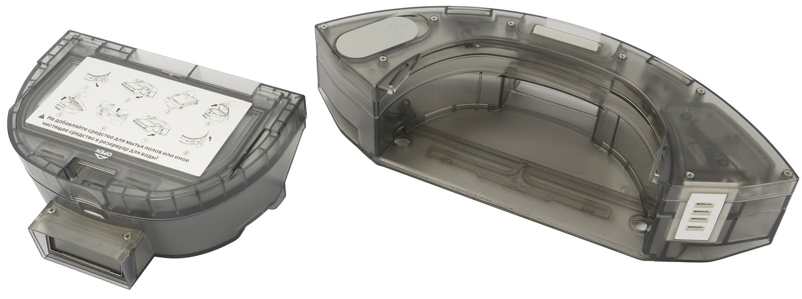 Единственный модуль-пылесборник, входящий в комплект, предназначен для комбинированной (сухой и влажной) уборки. Его отсек находится в задней части корпуса.