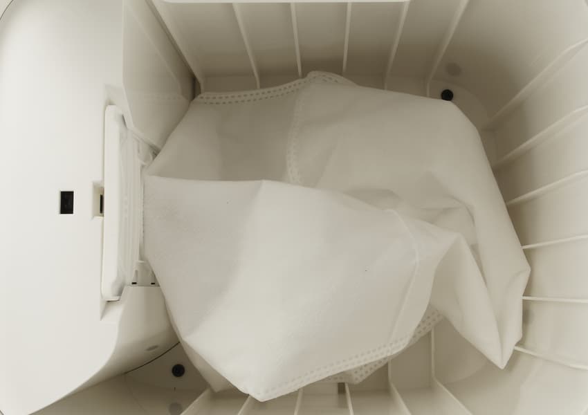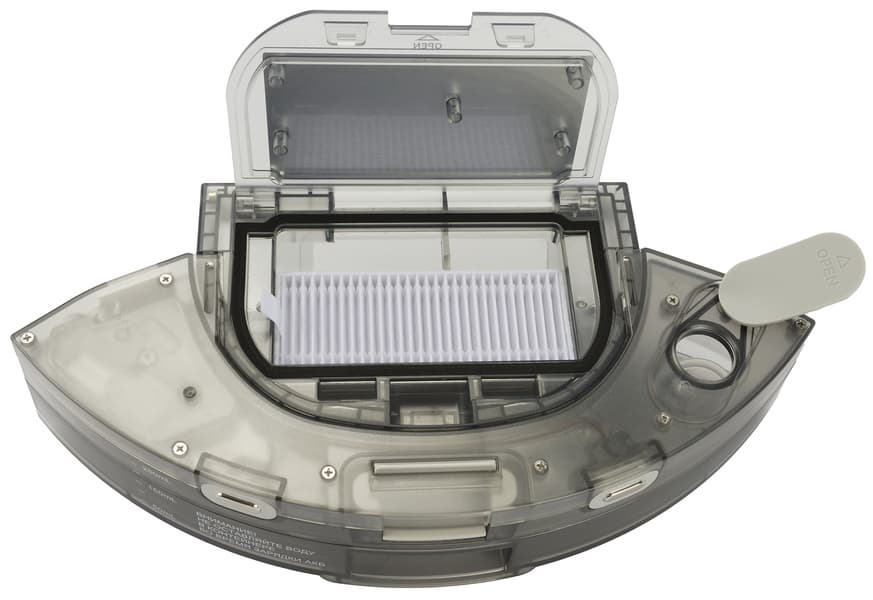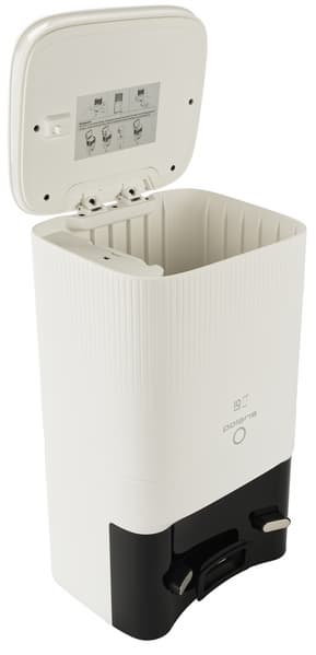 Под откидной крышкой прячется отсек для установки мешка для сбора пыли (объем — 4 л). Поток воздуха с пылью и мусором покидает контейнер и направляется в одноразовый пакет, установленный в отсеке станции. Посадочное место под него оборудовано специальным датчиком, и без мешка функция самоочистки не включится.
