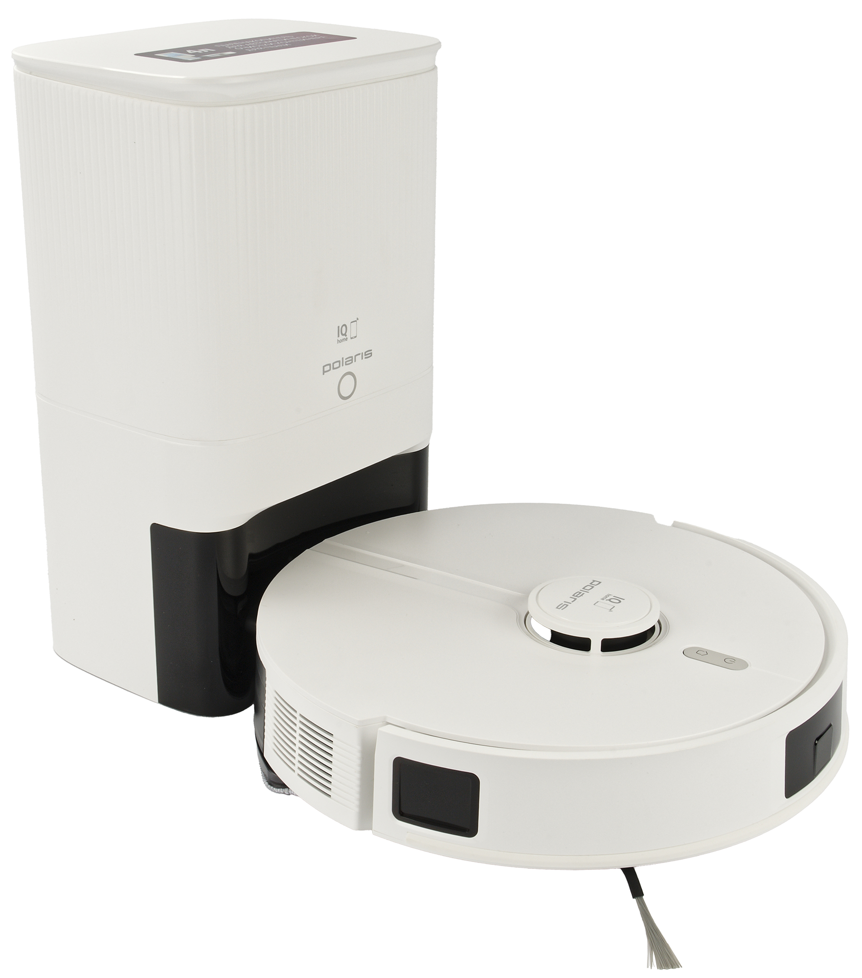 Когда наш Polaris завершает свою работу, он подъезжает вплотную к базе, разворачивается к ней кормой и стыкуется с раструбом системы самоочистки. При этом замыкаются контакты на мусоросборнике, включая встроенный в станцию стационарный пылесос.