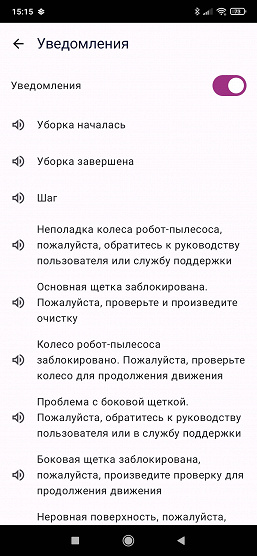 Уведомления от робота мы также будем получать непосредственно в приложении либо через шторку уведомлений смартфона.