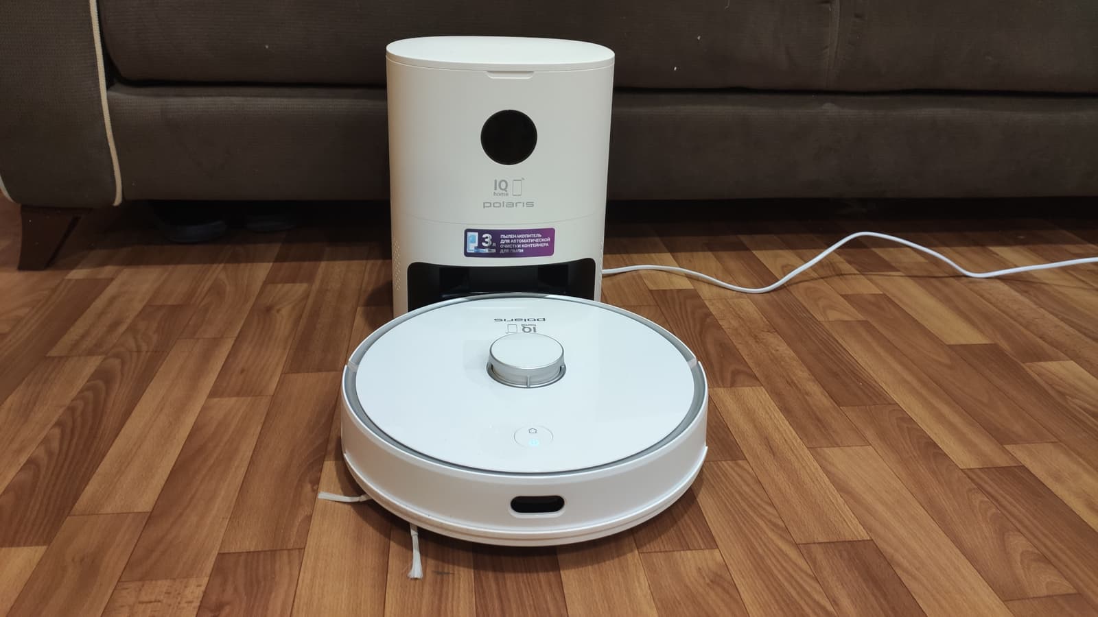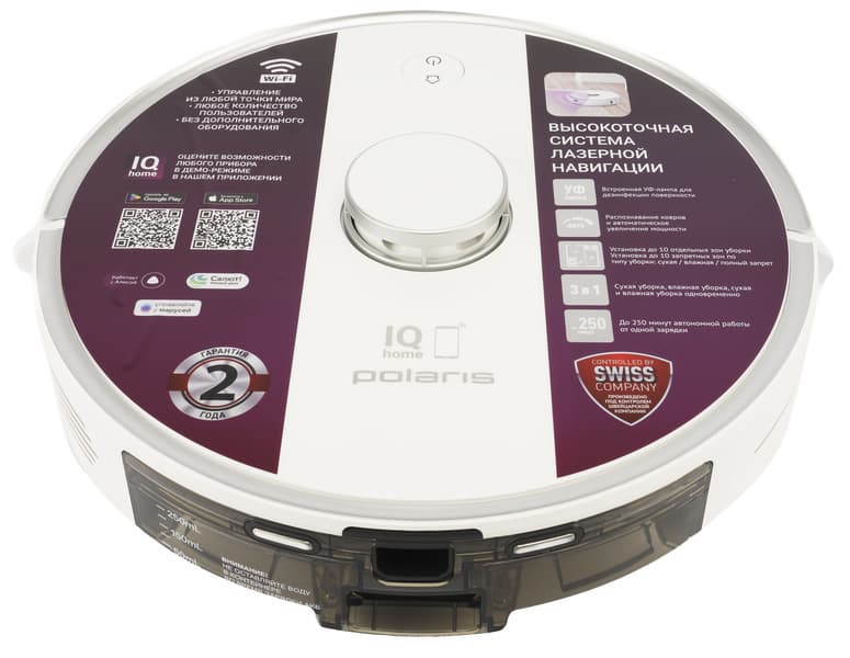 Внешне пылесос выглядит как и многие другие устройства от Polaris — белый пластик, стандартная для роботов компоновка элементов, компактная база самоочистки... найдем ли мы какие-либо существенные отличия от других моделей? Давайте рассмотрим устройство поближе!