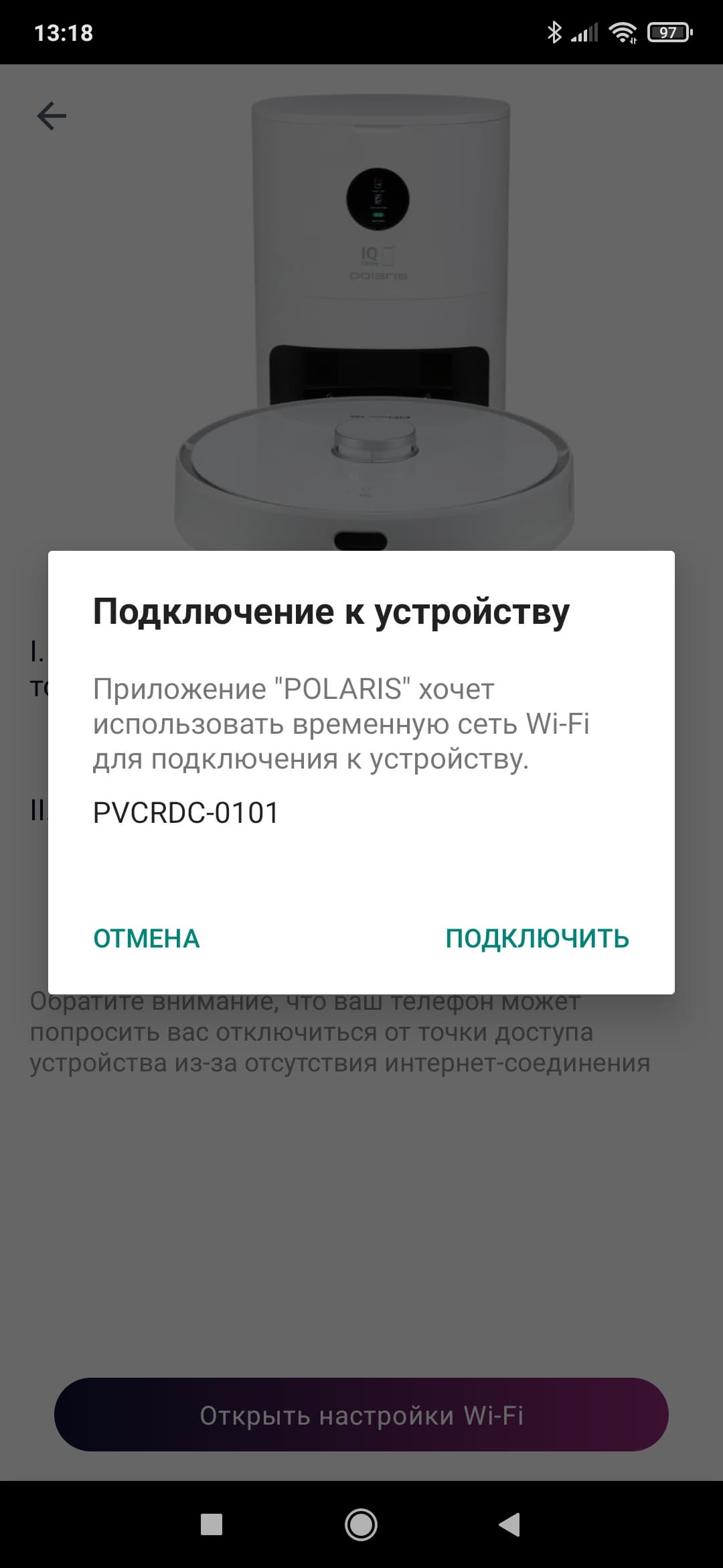 Прибор также можно контролировать с помощью мобильного приложения — при наличии в доме сети Wi-Fi, работающей на частоте 2,4 ГГц, а на смартфоне пользователя — специального приложения Polaris.