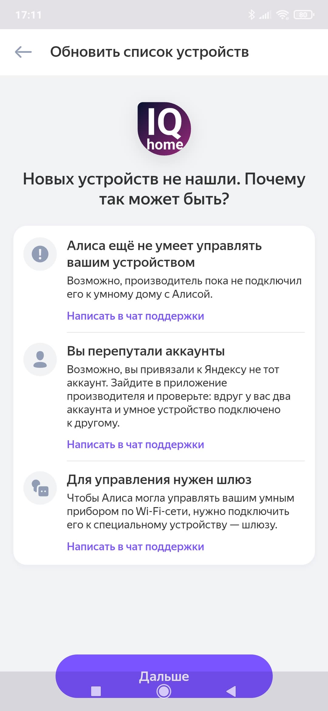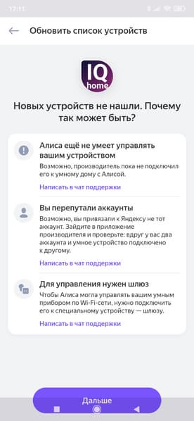 Мобильное приложение успешно выполняет свои функции. Голосовое управление (с помощью Алисы и Маруси) тоже работает, но тут, как водится, не обошлось без некоторых недоработок — мы давно привыкли, что у Алисы регулярно встречаются неработающие команды или ненажимающиеся кнопки.