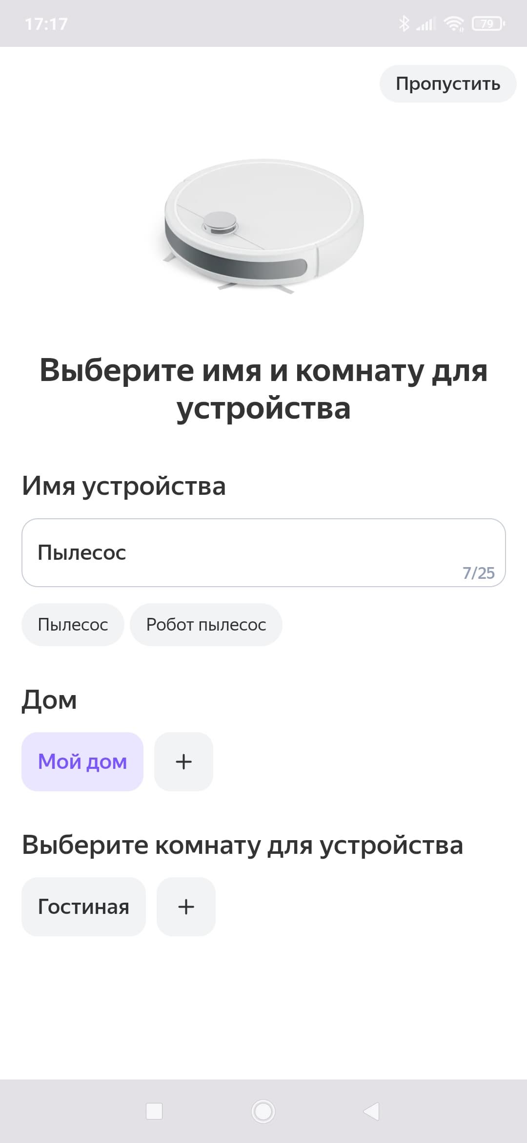 В ходе первоначальной настройки пылесосу можно назначить свою комнату (либо другое помещение).