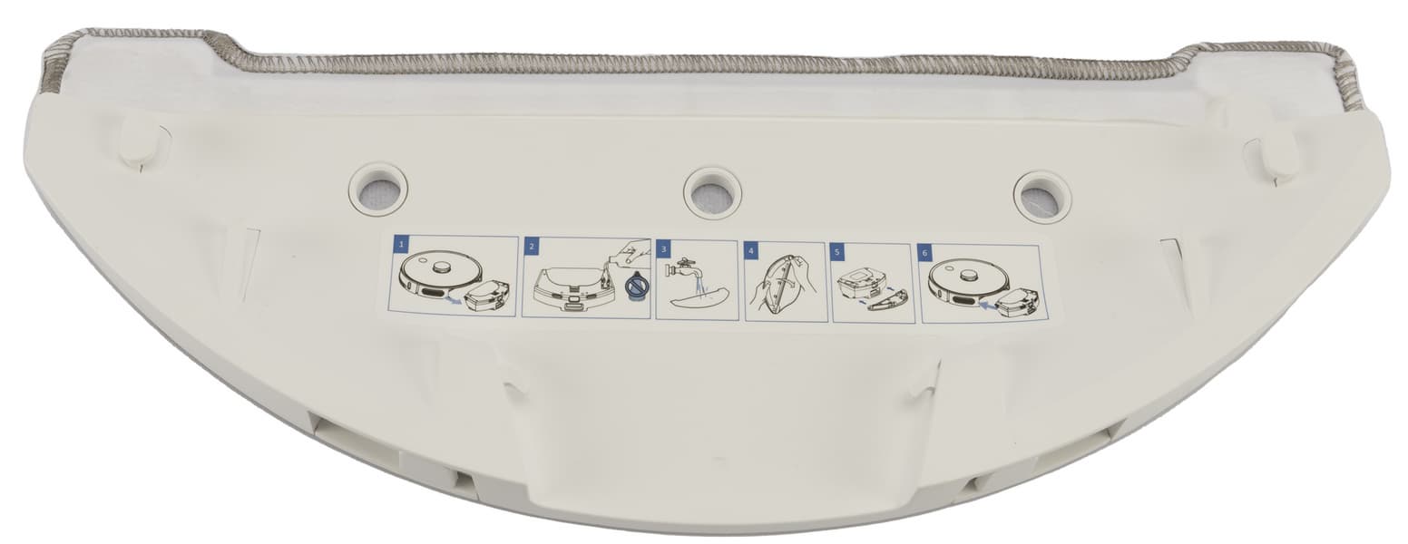 Съемная D-образная рамка служит для для крепления салфетки во время влажной уборки. На рамке мы нашли наклейку с инструкцией по очистке системы влажной уборки.