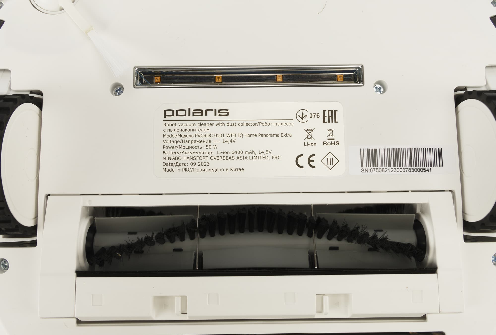 Над центральной щетки расположена УФ-лампа с четырьмя световыми элементами. По идее она должна производить обеззараживание убираемой поверхности, однако насколько такой метод окажется эффективен в режиме реальной эксплуатации — нам не известно.