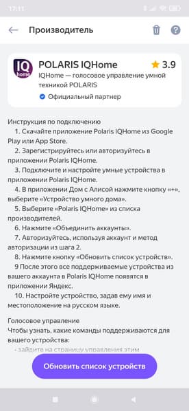- поддержка мобильного приложения и голосовых помощников