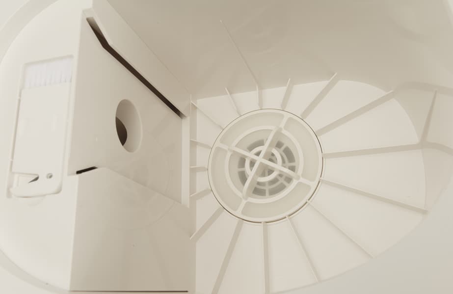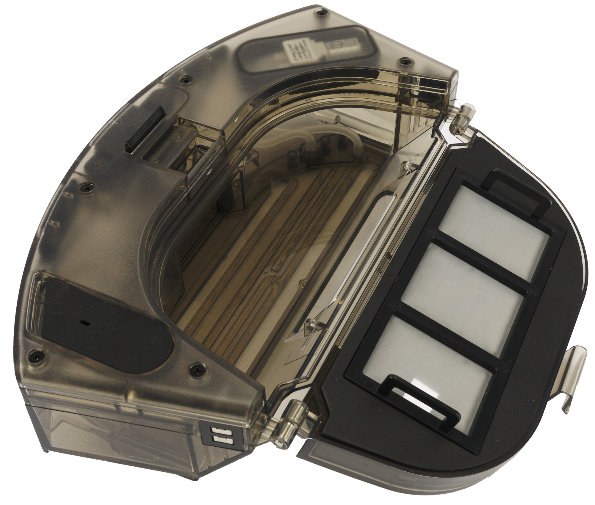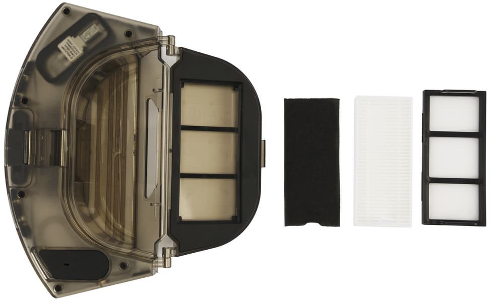 Система фильтрации имеет три ступени: поток воздуха с пылью проходит через тонкую капроновую сетку, затем — фильтр из тонкого поролона, а потом — через прямоугольный HEPA-фильтр.