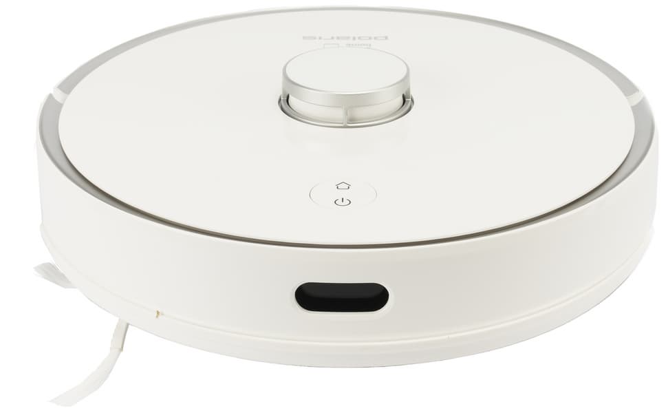Над глянцевой верхней панелью возвышается башенка лидара: в ней вращается основной навигационный орган пылесоса, состоящий из оптического излучателя и приемника. С помощью LDS-сенсора пылесос с высокой точностью определяет расстояние до препятствий и моментально строит карту помещения, планируя уборку.
