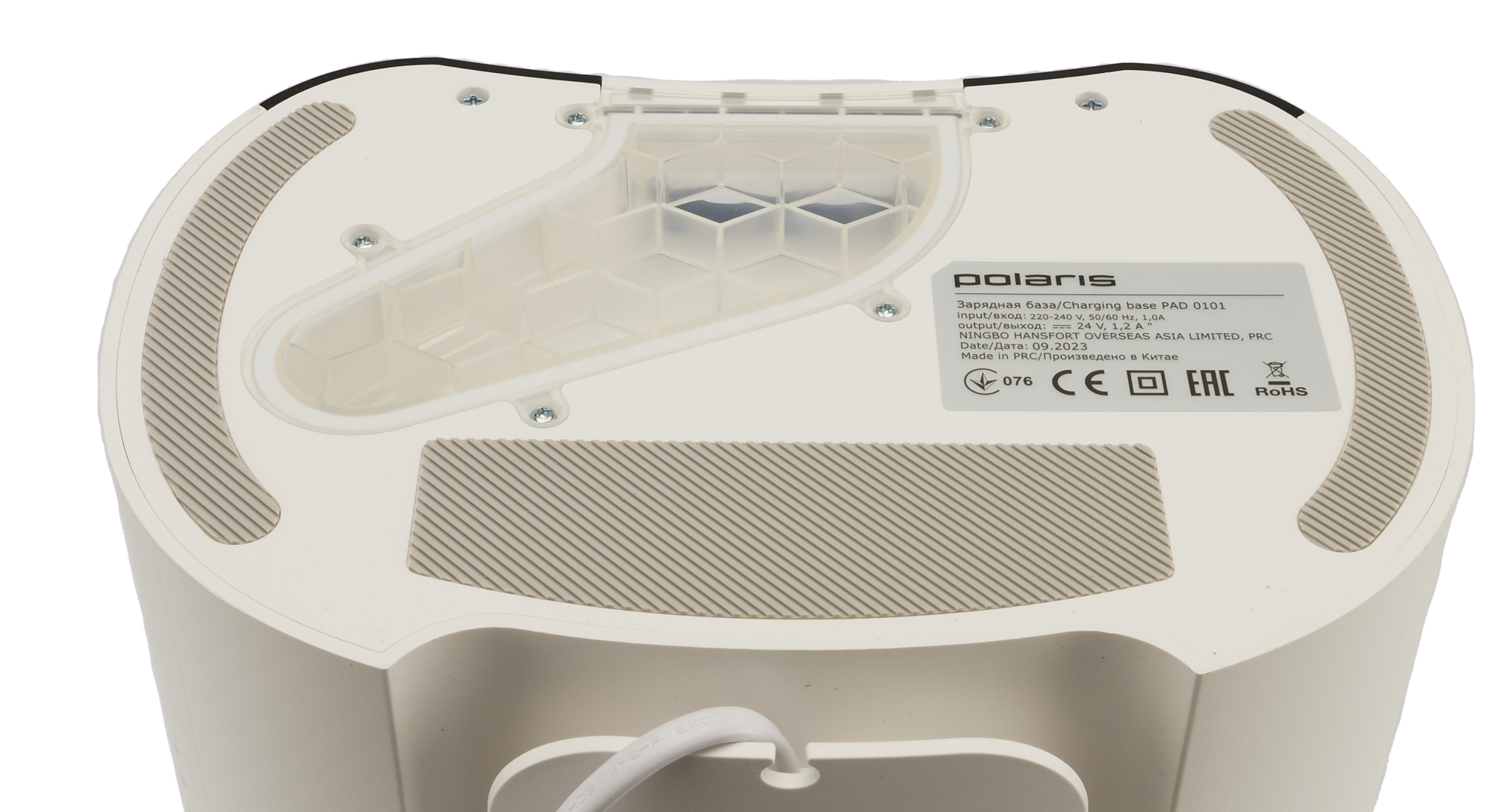 Когда наш Polaris завершает свою работу, он подъезжает вплотную к базе, разворачивается к ней кормой и стыкуется с раструбом системы самоочистки. При этом замыкаются контакты на мусоросборнике, включая встроенный в станцию стационарный пылесос.