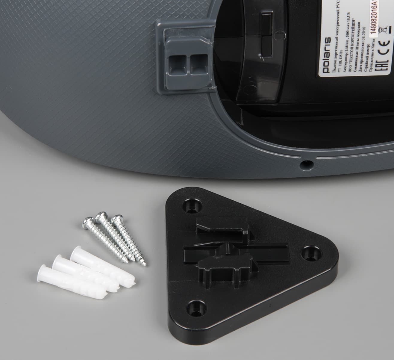 Также пылесос можно повесить на стену, для чего на стене закрепляется входящий в комплект поставки кронштейн треугольной формы.