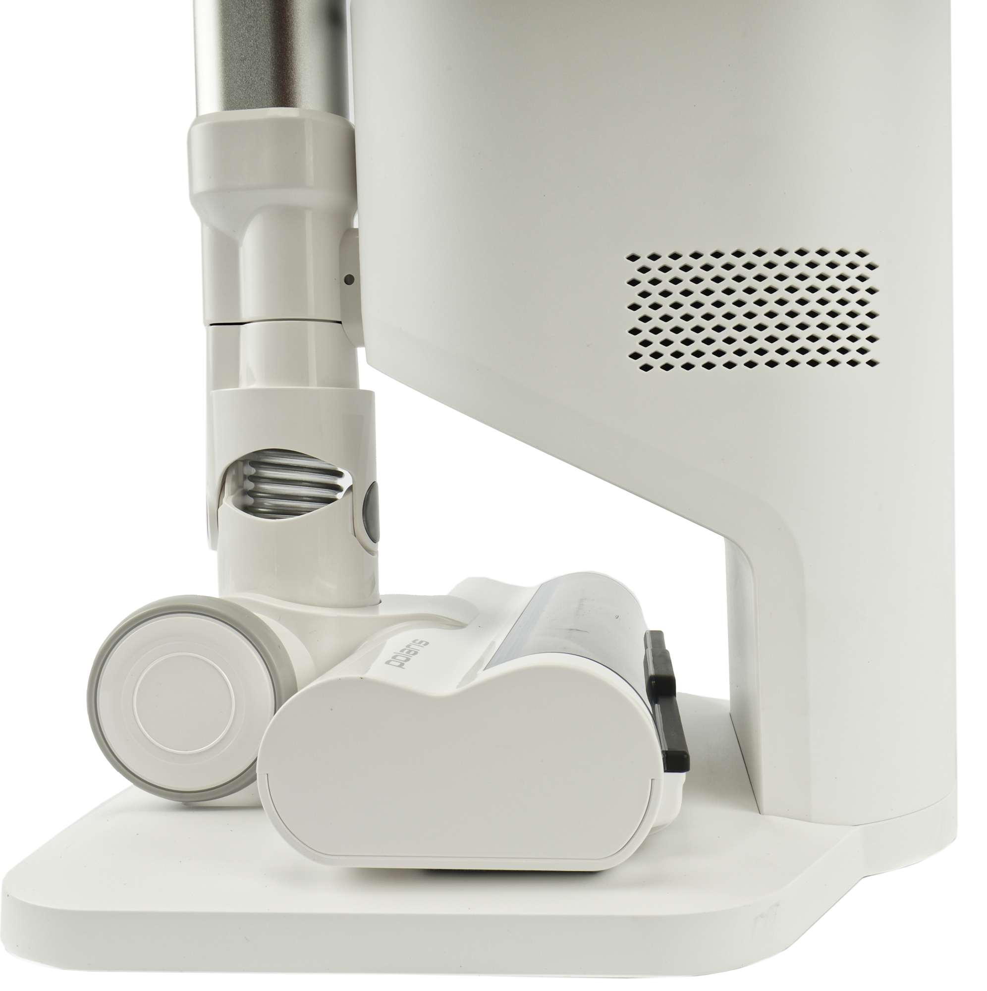 При установке пылесоса на базу торцевая крышка контейнера для мусора автоматически открывается. Встроенный в станцию пылесос удаляет пыль и грязь из мусороприемника, одновременно очищая и фильтры. Автоматического закрытия крышки контейнера не предусмотрено: перед следующей уборкой ее следует закрыть вручную.