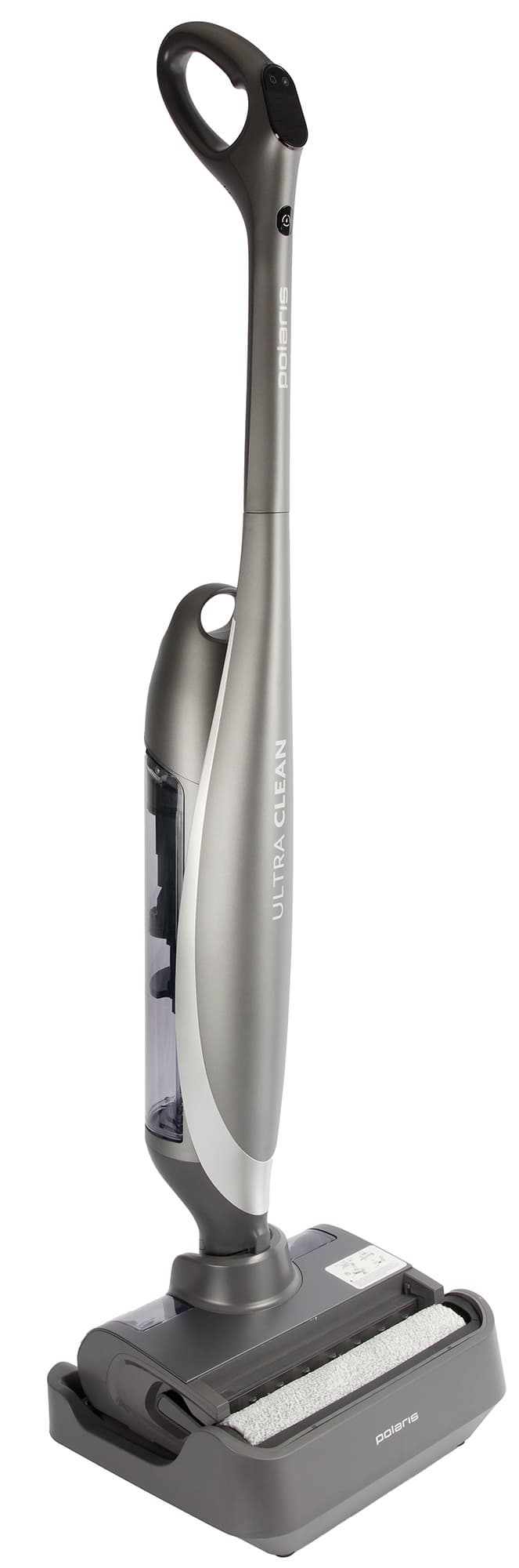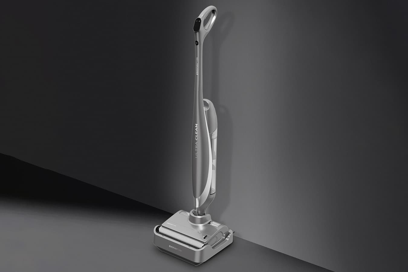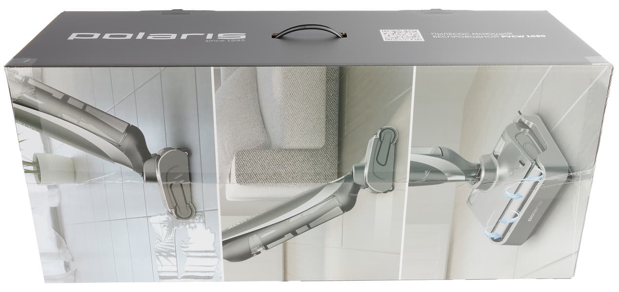 Новая модель в линейке вертикальных моющих пылесосов Polaris отличается наличием базовой станции, промывающей роторную щетку и сушащей ее горячим воздухом.