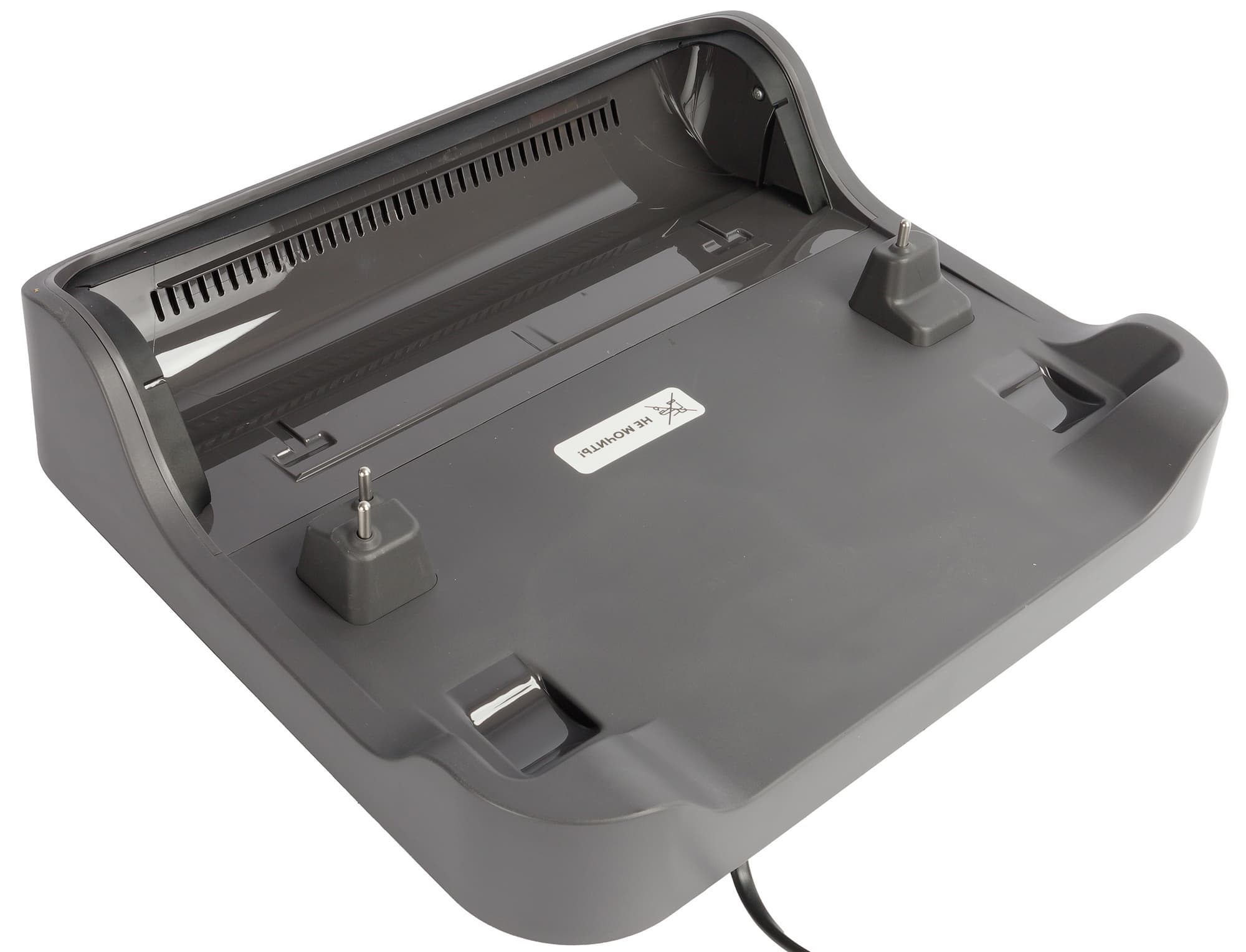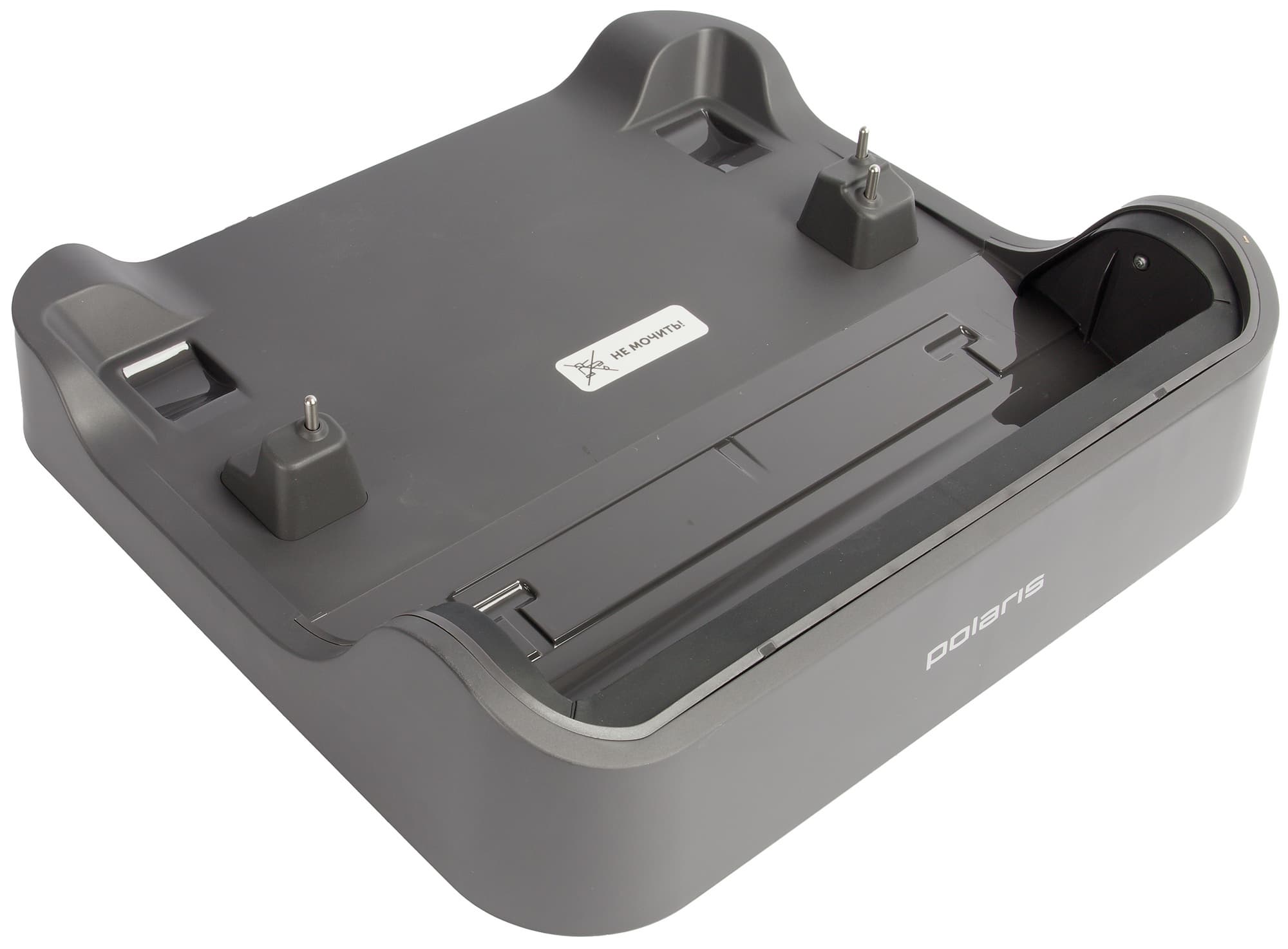 Базовая станция предназначена для зарядки и самоочистки устройства. Для подключения прибора служат подпружиненные электроконтакты, выступающие над поверхностью корпуса.