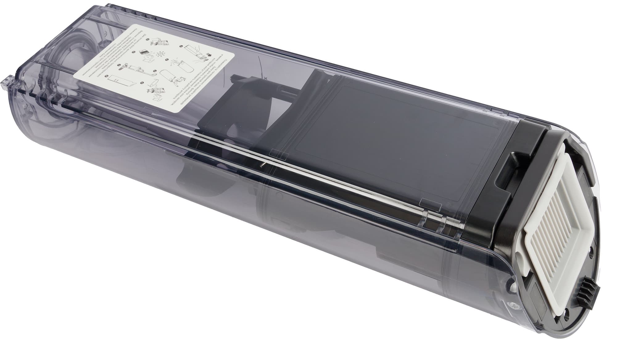 Поток воздуха покидает контейнер через влагоустойчивый HEPA-фильтр стандартной конструкции. Гармошку фильтрующего элемента защищает прочная капроновая сетка на откидной рамке.