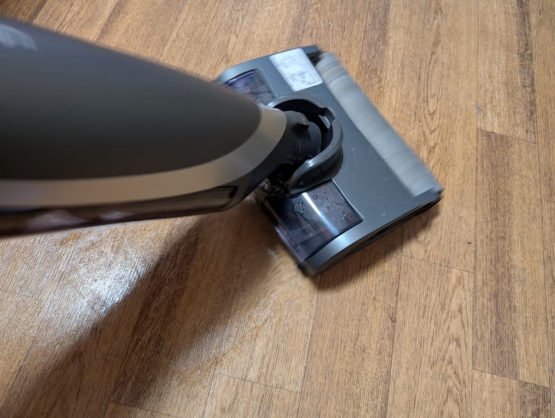 Управление подачей воды у этой модели автоматическое, управлять интенсивностью увлажнения здесь не получится. Автоматика настроена вполне адекватно, при уборке устройство не оставляет капель и потеков, равномерно и качественно смачивая щетку и поверхность пола.