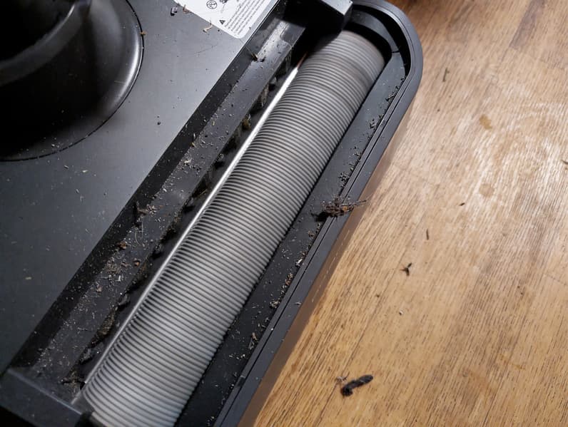 В процессе самоочистки вращающаяся щетка может выбрасывать на пол перед базой фрагменты мусора и оставлять брызги воды. На наш взгляд, конструкторы устройства напрасно отказались от защитной крышки ротора: она могла бы помочь поддерживать чистоту вокруг станции.