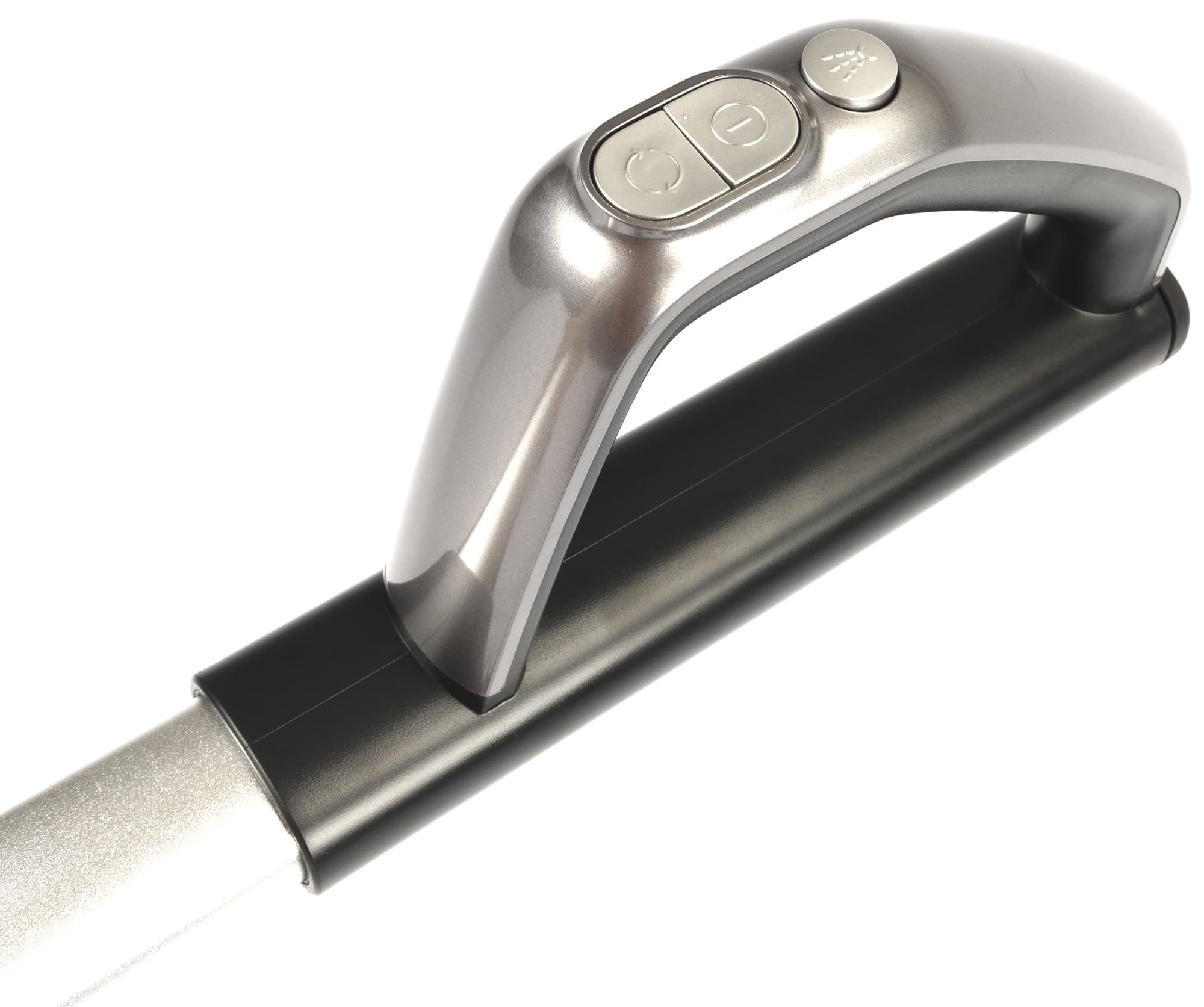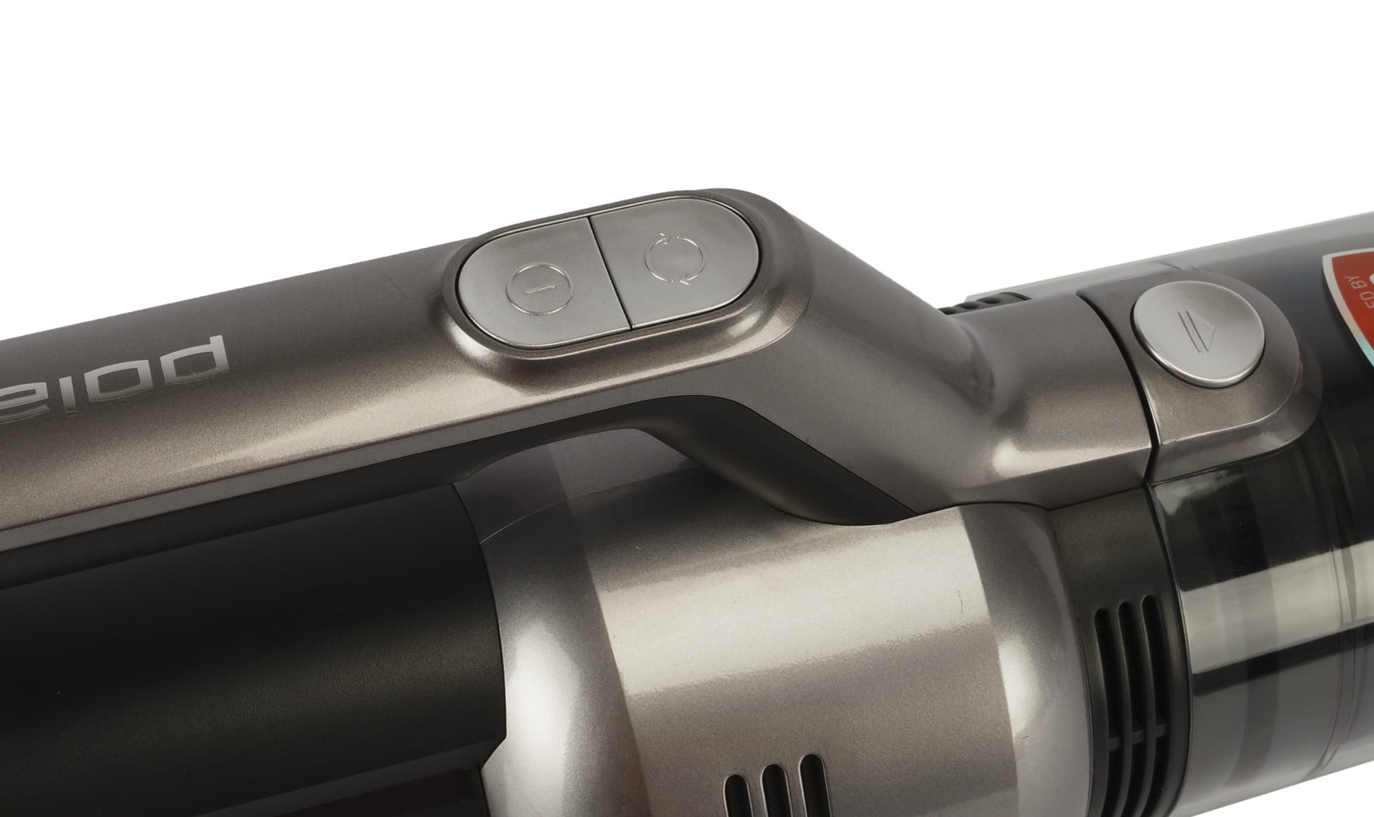 В конфигурации для ручной уборки пылесос управляется двумя кнопками на ручке моторного блока. Первая включает и выключает устройство, вторая управляет мощностью всасывания.