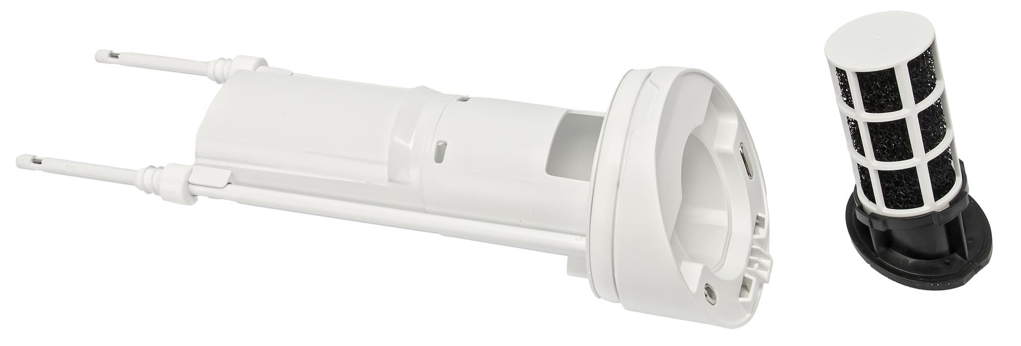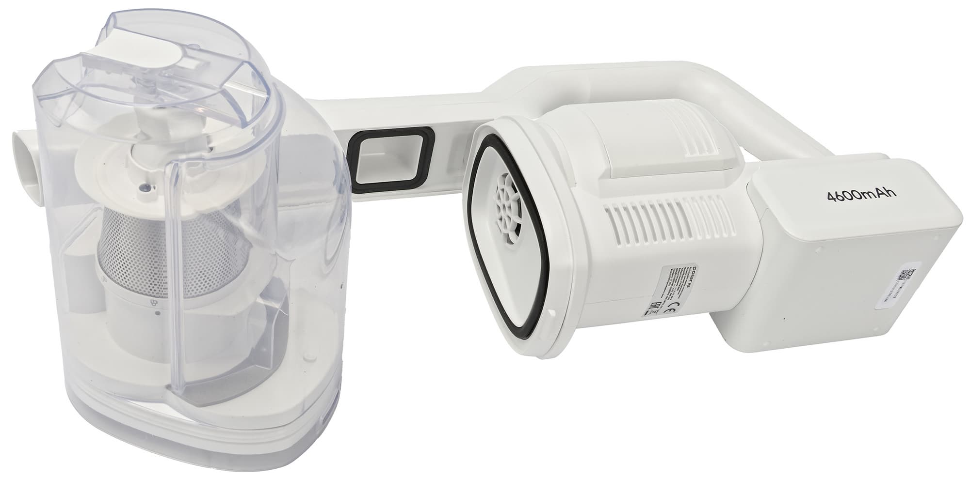 Она, как и пылесос, выполнена из белого матового пластика, и требует небольшой сборки — установки штанги-держателя.