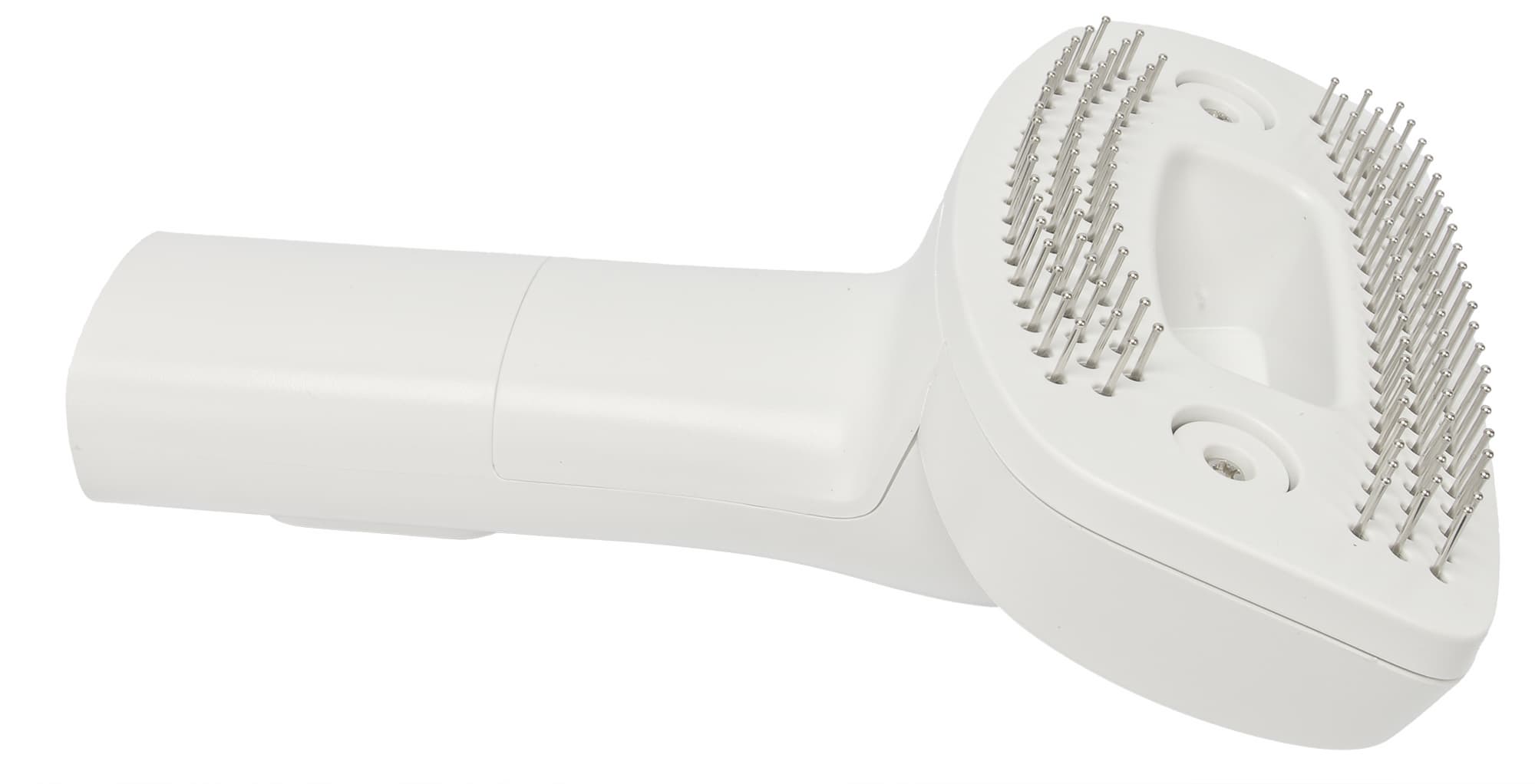 Насадка для вычесывания домашних животных также имеет право на существование. Если ваш кот или пес не боится пылесосов, то вычесывать их такой насадкой — одно удовольствие. Автоматический сброс шерсти прямо внутрь пылесоса — гораздо лучше, чем сначала вычесывать животное, а потом ловить летающую шерсть по всей комнате.