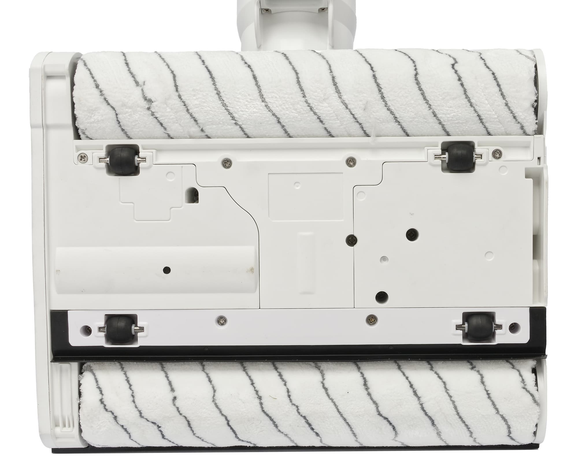 За мытье пола отвечают два ролика из мягкой ткани. Их, при необходимости, можно извлечь и промыть вручную. Впрочем, забегая чуть вперед, скажем, что данная модель оснащена функцией автоматической мойки и сушки роликов, поэтому регулярно промывать их вручную не придется.