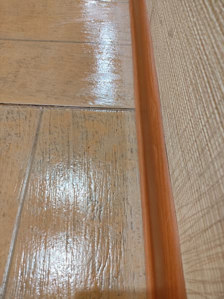 Умеренное количество жидкой грязи и воды убираются мгновенно. Сразу же обращаем внимание, что пол после уборки жидкости остается практически сухим.
