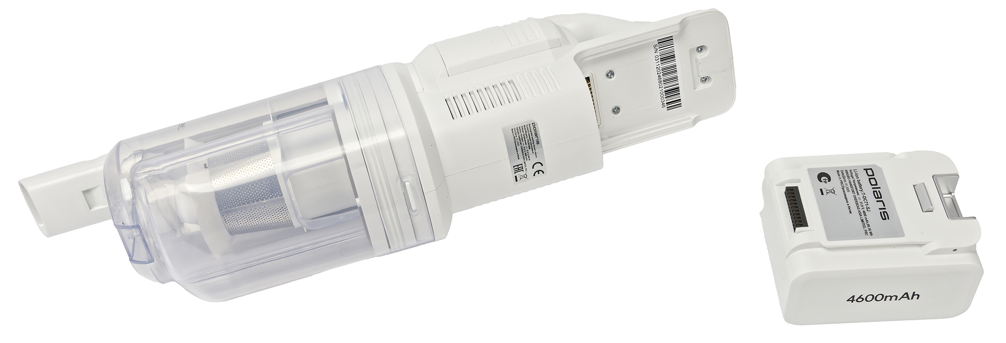 Наконец, еще один важный элемент: наш пылесос укомплектован дополнительным аккумулятором на 4600 мА·ч (точно таким же, как основной) и внешним зарядным устройством-адаптером.