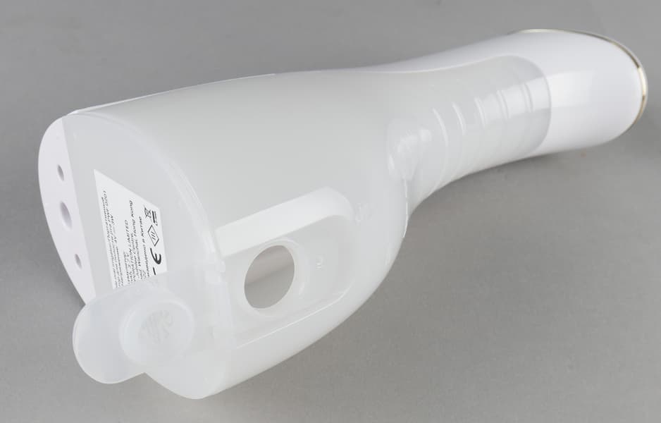В задней части корпуса расположен бак сложной формы, сделанный из белого полупрозрачного пластика. Нанесенное на него рифление позволяет надежно удерживать устройство.