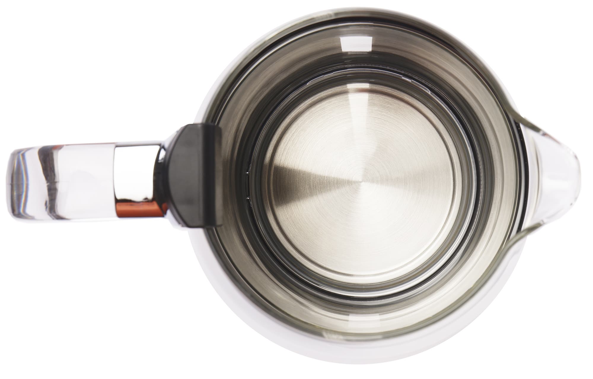 Взглянув на открытый чайник сверху, мы видим дно из нержавеющей стали.