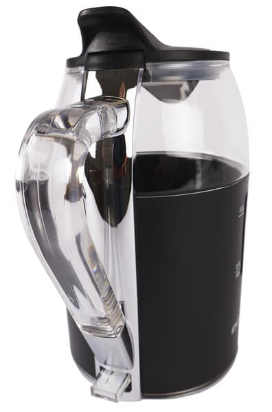 Чтобы добавить воду в чайник, нет необходимости снимать крышку. Достаточно подставить чайник под поток воды, и прозрачный пластиковый круг в середине плавно опустится под весом воды, давая ей возможность без брызг наполнить чайник.