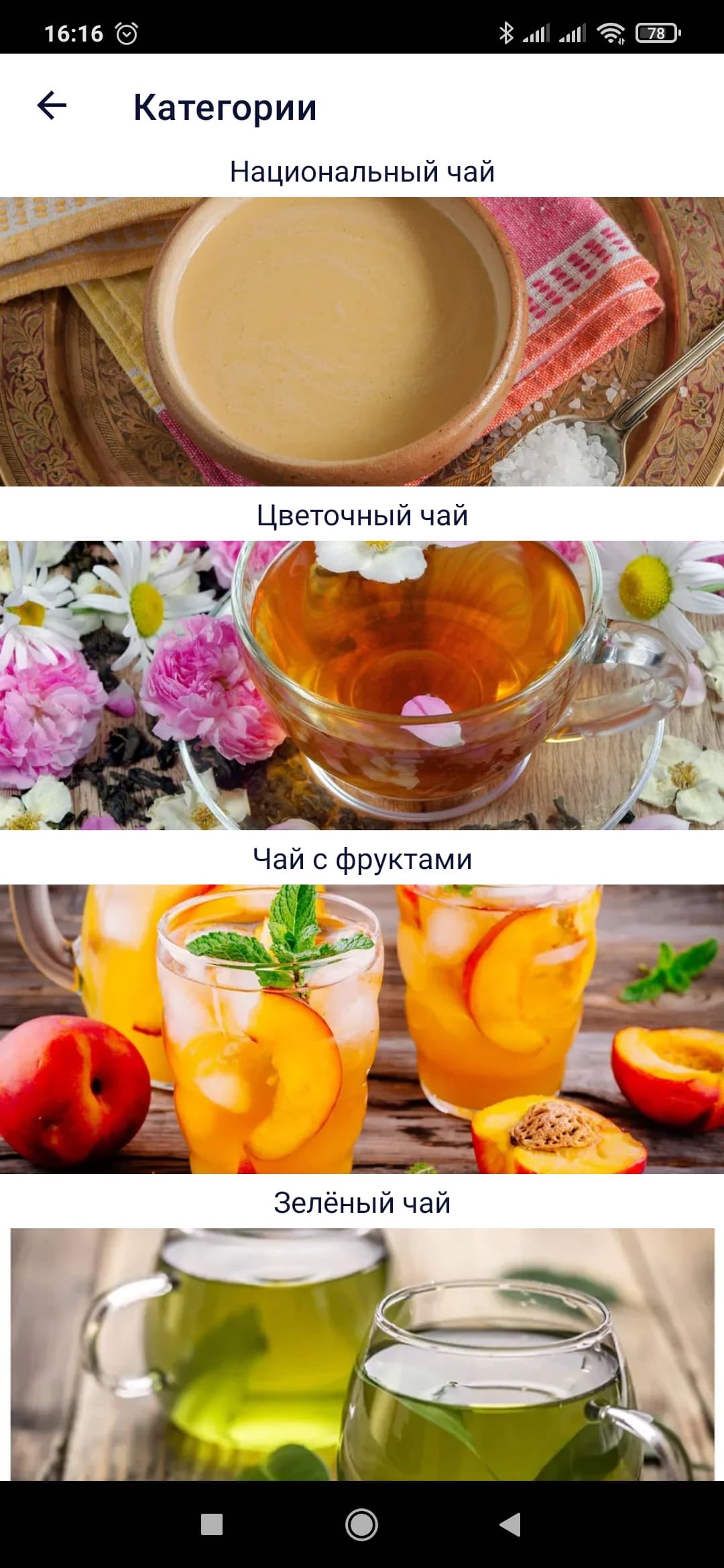 Во вкладке «Рецепты» — 100 способов приготовить чай, рассортированных по тематическим папкам.