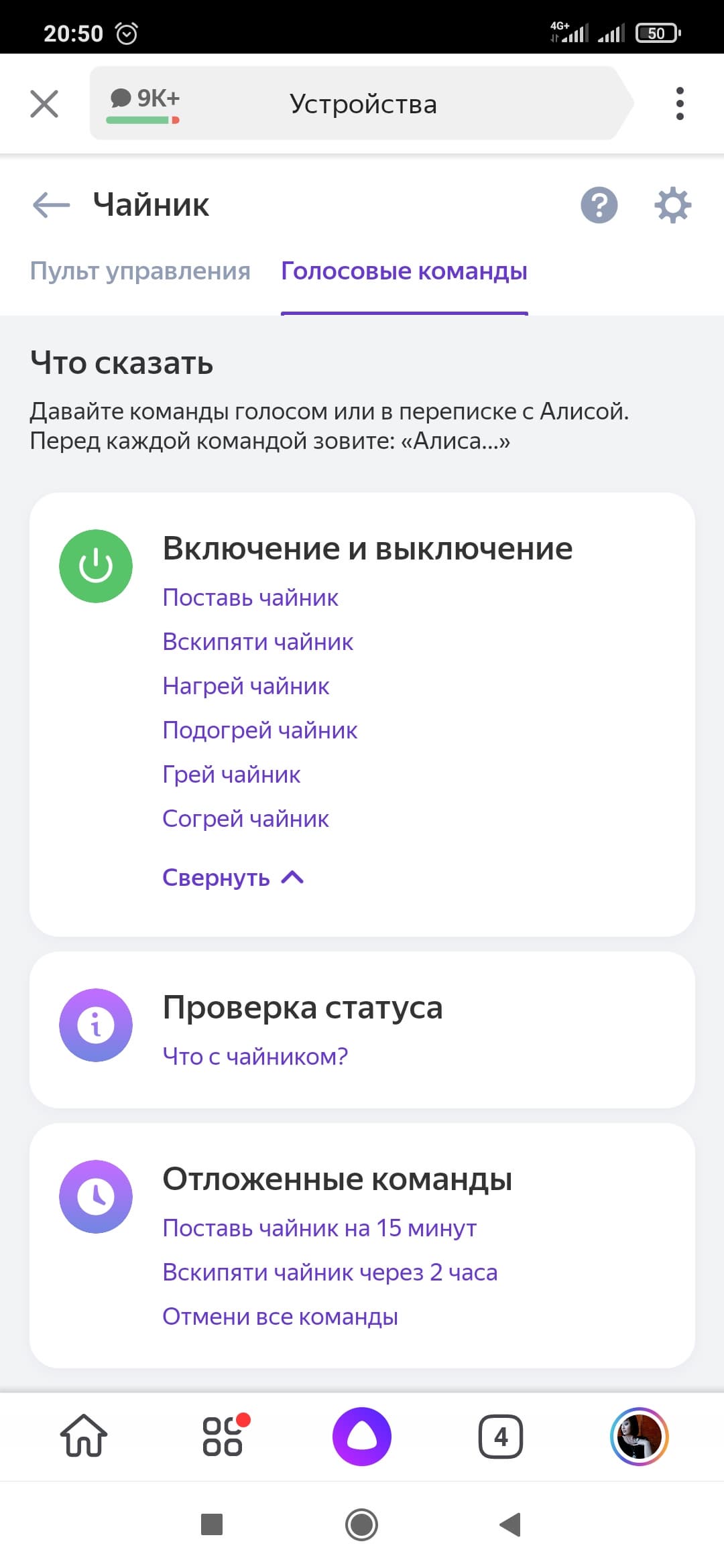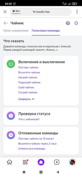 Вот и все. Теперь достаточно вызвать «Алису» и дать ей задание. Тут не разгуляешься: помощник «Яндекса» знает только один режим — кипячение, зато можно задать время, когда именно вам нужен кипяток.
