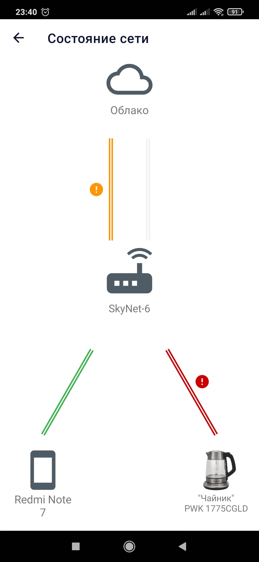 В случае неполадок приложение покажет, какой элемент сети «отвалился».