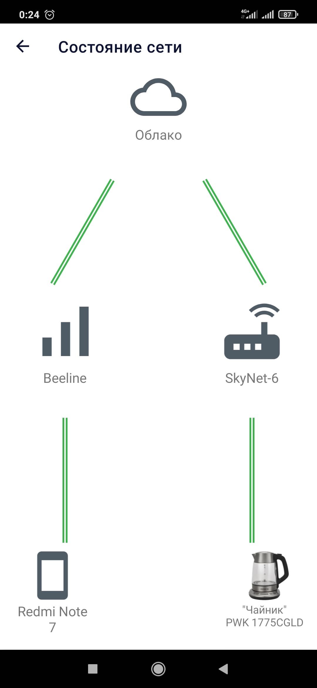 Также в настройках вы в любое время можете проверить состояние сети.