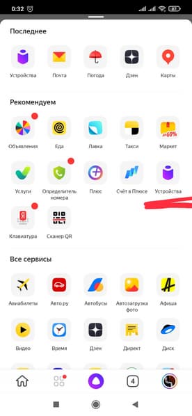 Для того чтобы привязать PWK 1775CGLD к голосовому помощнику «Алиса», первым делом нужно скачать приложение «Яндекс», войти в свою учетную запись и найти пункт «Устройства».