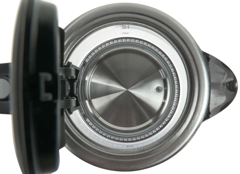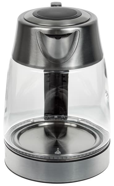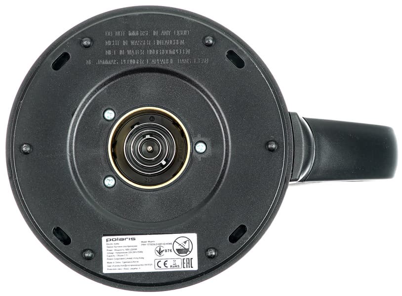 На дне из нержавеющей стали закреплен датчик температуры. Основание чайника сделано из черного пластика. Контактная группа — штырь и несколько металлических колец.