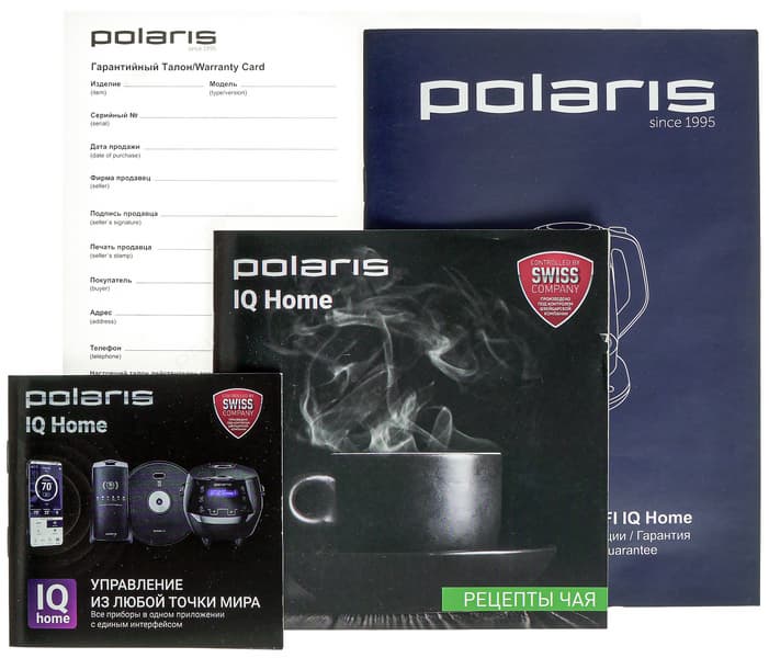Книжечка формата А5 состоит из трех блоков: русскоязычного, для украинских и казахстанских пользователей. На каждый блок — по 20 страниц. Описанию прибора и «классическим» функциям чайника посвящено 2 страницы, основной же раздел — об удаленном управлении: это и порядок действий для сопряжения устройства со смартфоном, и описание доступных в приложении IQ Home режимов и функций. Кроме того, пользователь может ознакомиться с правилами чистки прибора и таблицей возможных неисправностей. Написано все понятно, но как же утомляют пунктуационные ошибки и постоянная путаница с -тся/-ться — тут бы корректору пройтись.